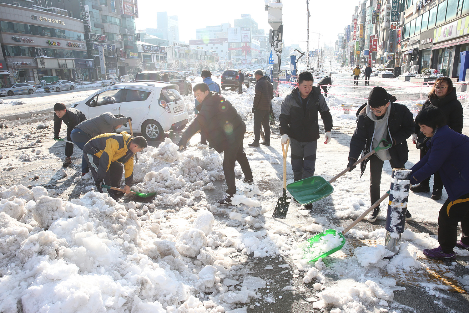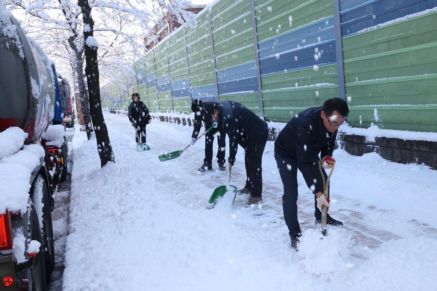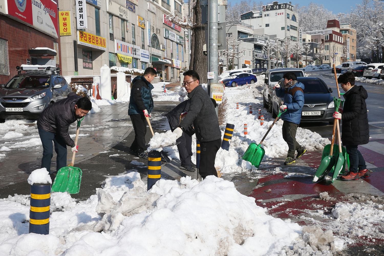 또한 시가지 이면도로와 보도 등에 대한 제설작업을 위해 9일(일) 9시를 기해 전 직원 비상근무를 발령하고 담당동 지역에 투입하여 제설작업을 실시했다.