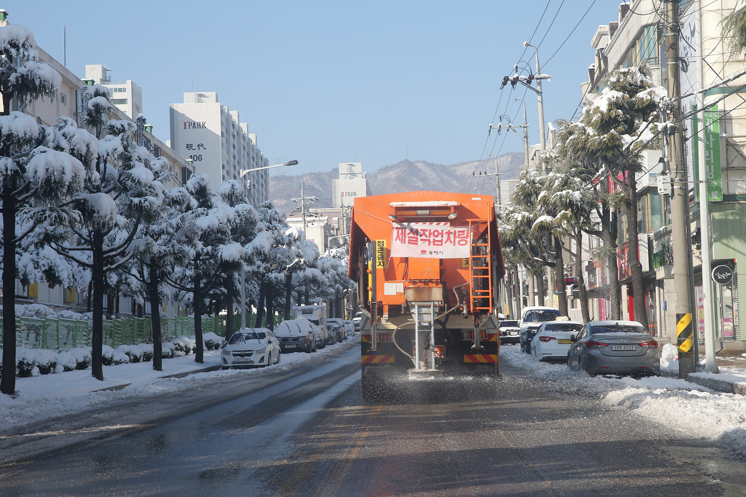 특히, 시에 따르면 이번 강설시에는 도로 경사지 취약 구간인 국도7호선 양지마을, 해안로 일정아파트 앞과 평생학습관 앞 등 6개 지점에 설치한 염수분사장치 운영이 경사지 빙판길 발생과 교통사고를 예방하는데 톡톡한 효과를 거두었다고 밝혔으며, 금일중 간선도로와 이면도로, 보도 등에 대한 제설작업을 마무리하여 시민 불편이 최소화 되도록 최선을 다할 계획이라고 밝혔다.