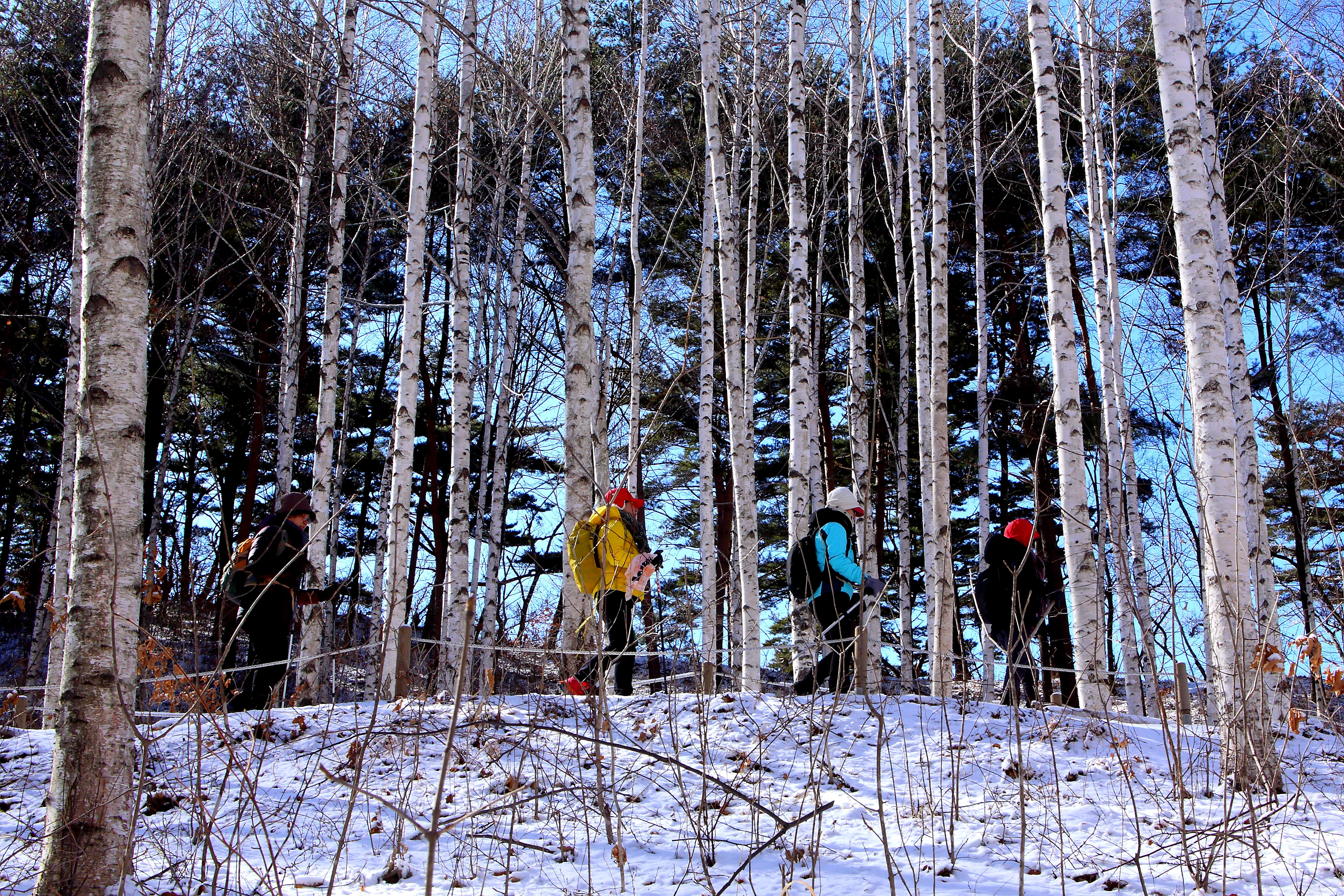 인제 원대리 자작나무 숲 일대가 최근 내린 눈으로 순백의 세상을 연출하며 막바지 겨울 아름다운 풍경 속에서 관광객들이 추억을 쌓고 있다.