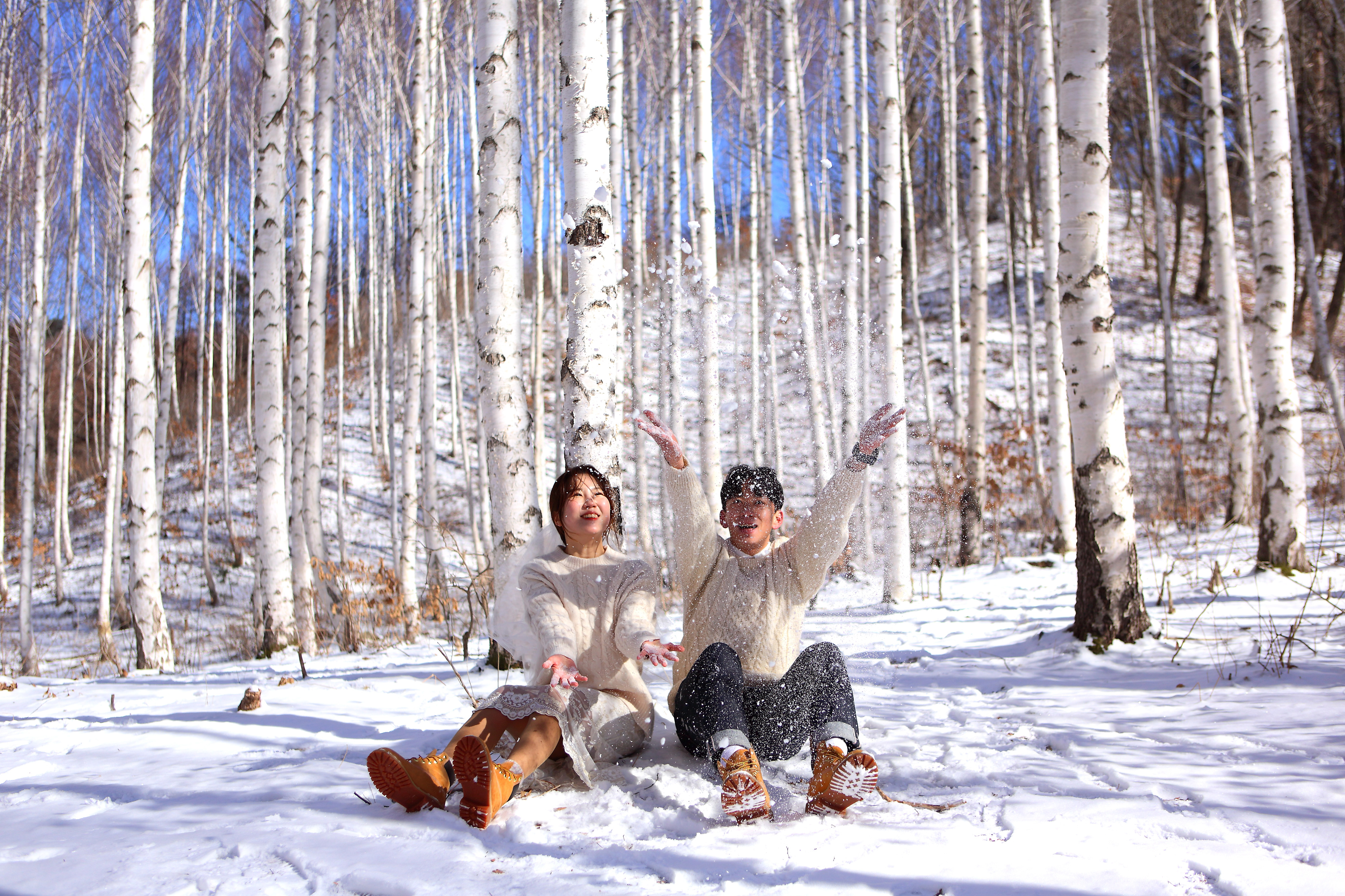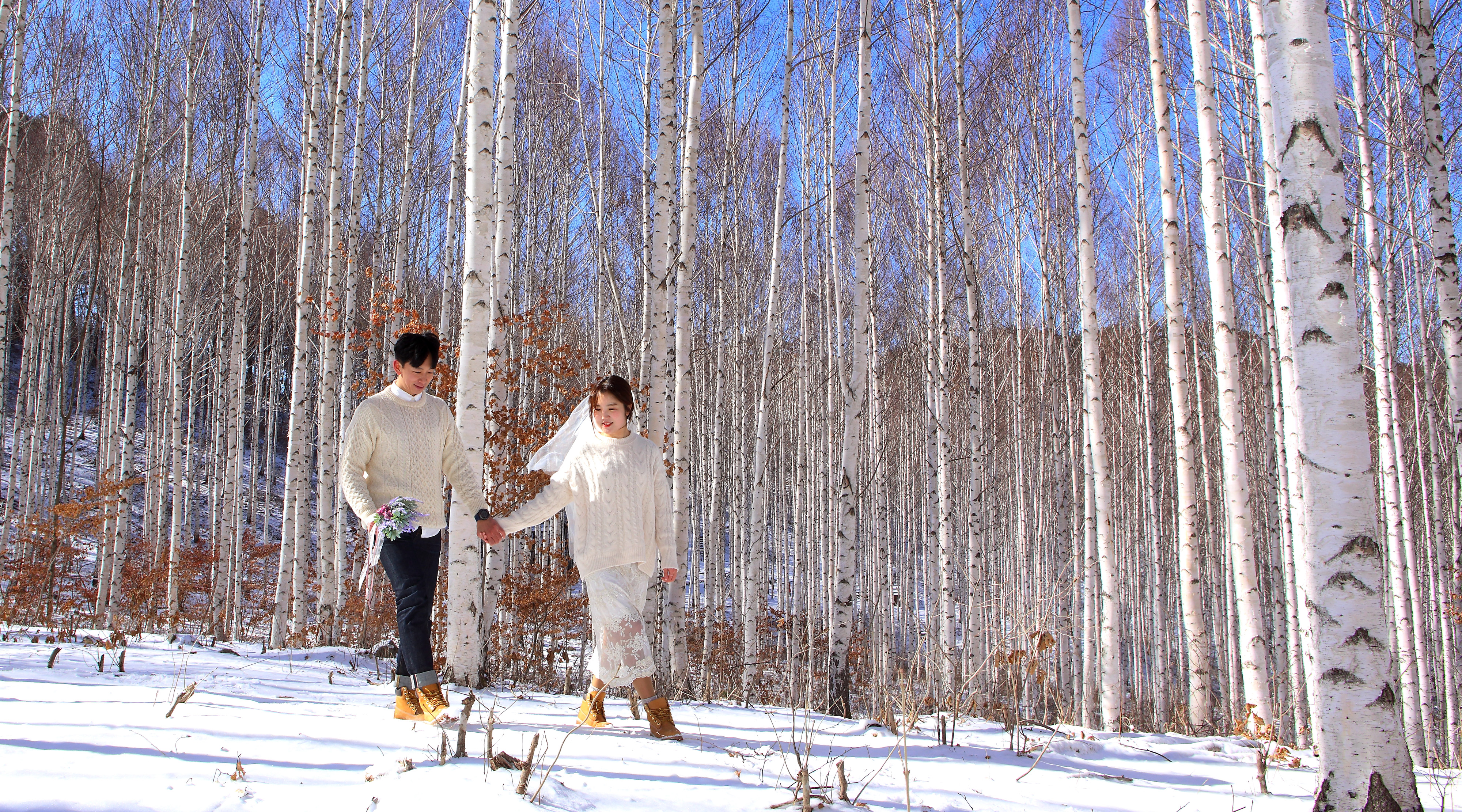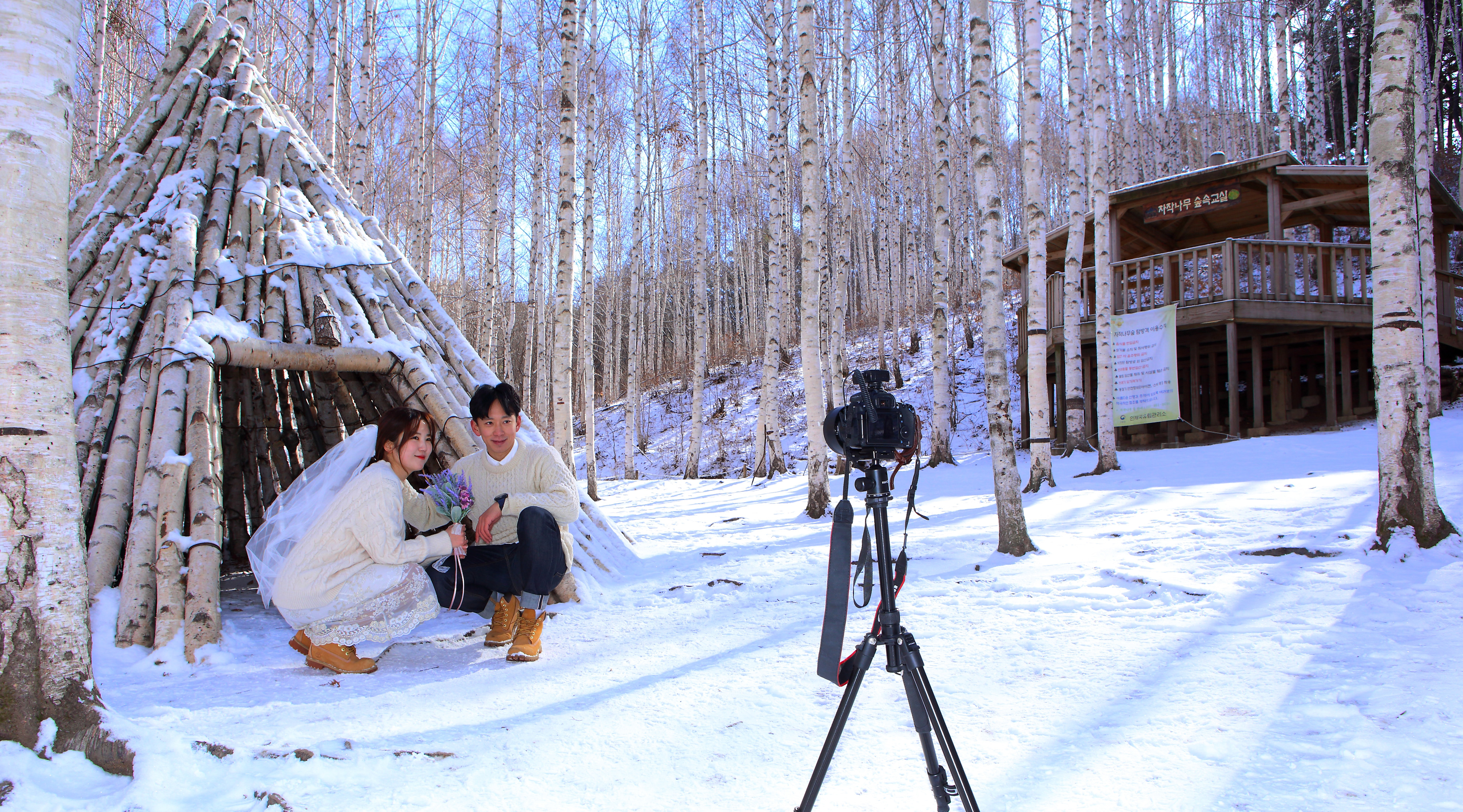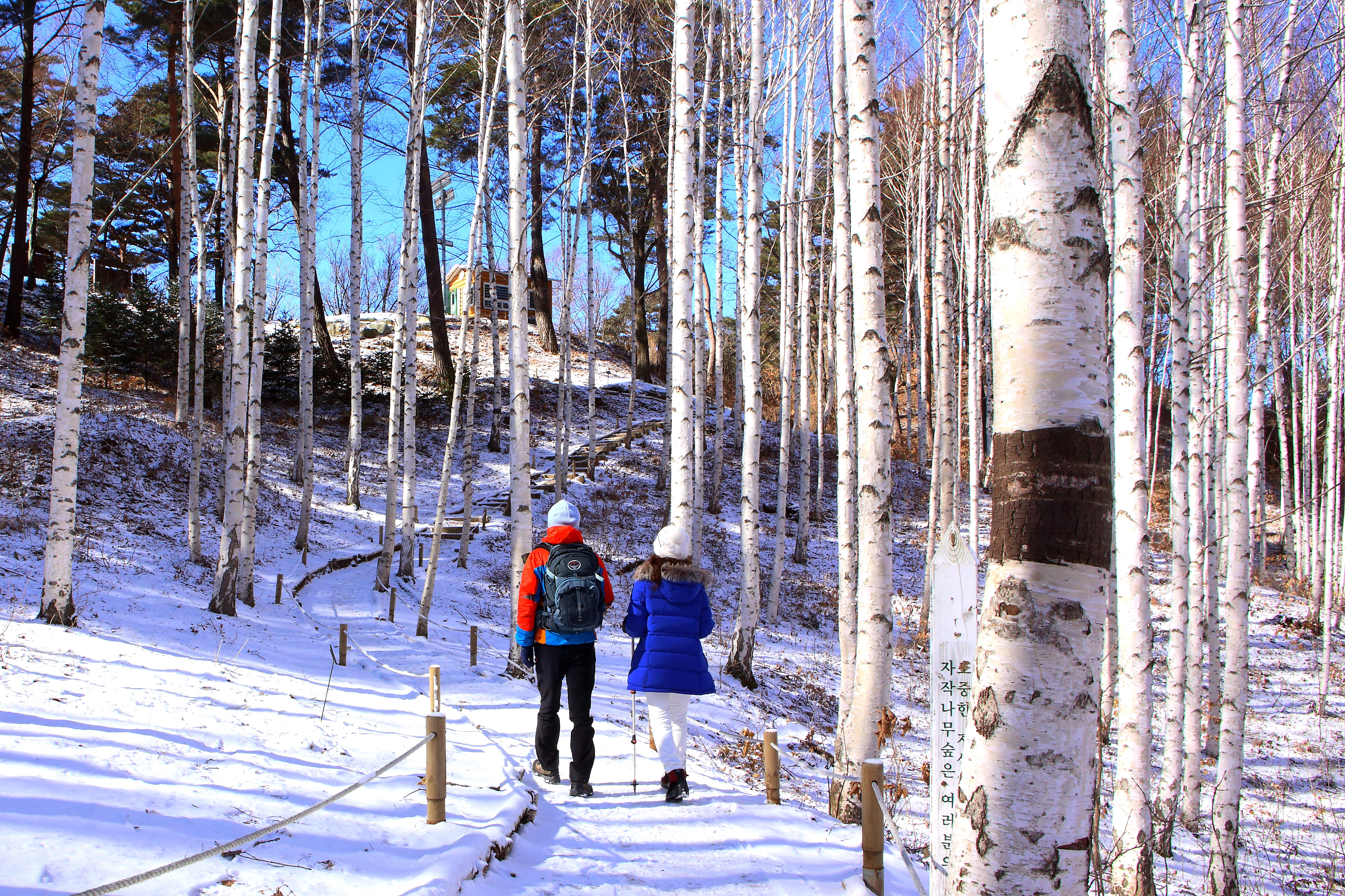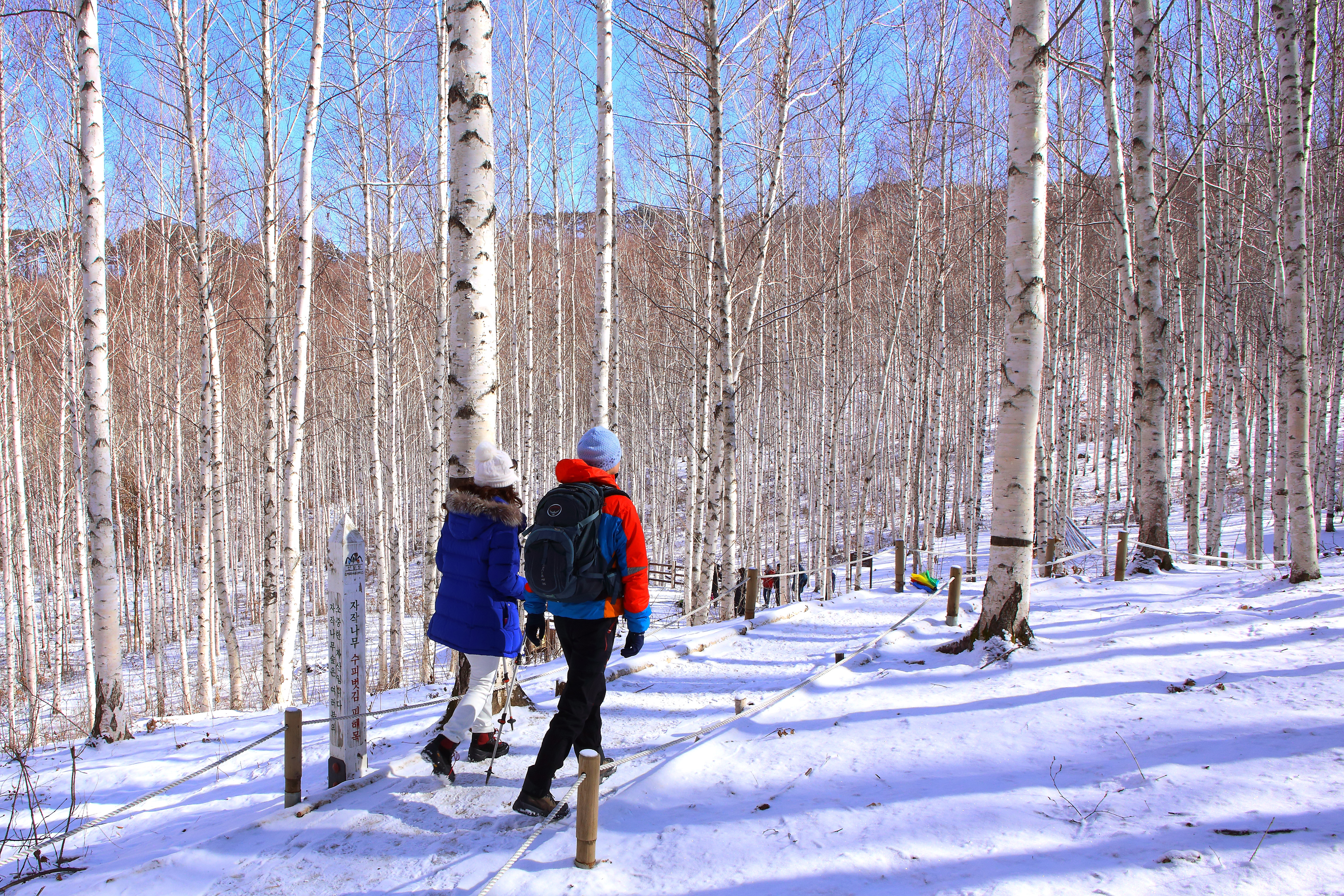 인제 원대리 자작나무 숲 일대가 최근 내린 눈으로 순백의 세상을 연출하며 막바지 겨울 아름다운 풍경 속에서 관광객들이 추억을 쌓고 있다.