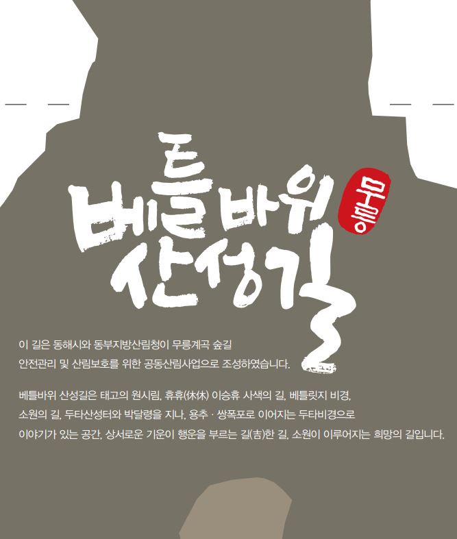 동해시와 동부지방산림청이 무릉계곡 숲길 안전관리 및 산림보호를 위해 공동산림사업으로 조성하고 있는 베틀바위 산성길(무릉계곡 관리사무소 ~ 두타산성 입구) 2.7㎞ 구간이 8월 1일부터 부분 개방한다고 밝혔다.