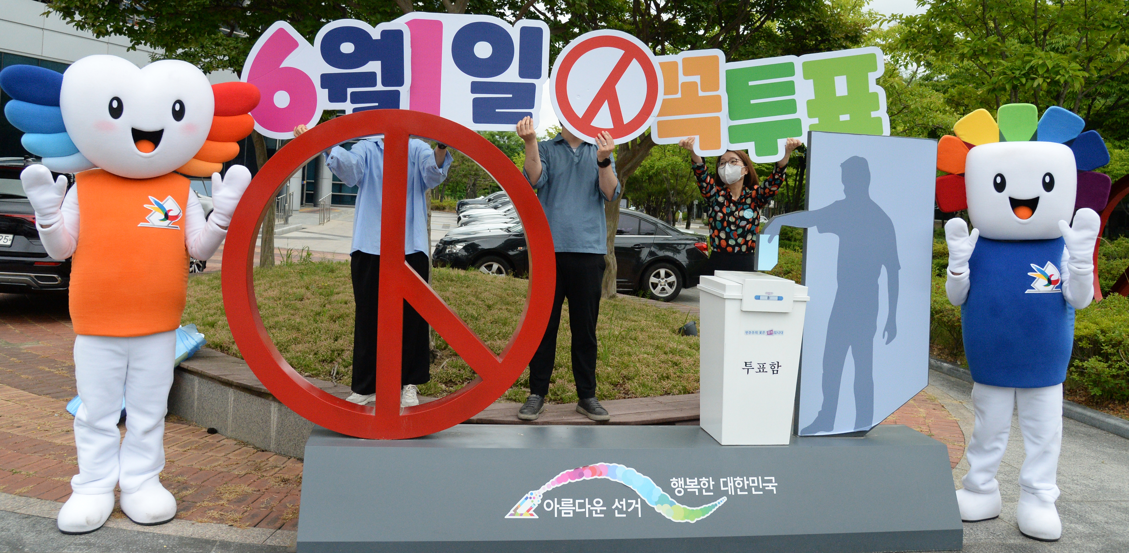 30일 제8회 전국동시지방선거를 앞두고 전북 전주시 전라북도선거관리위원회에서 관계자들이 투표 톡려 퍼포먼스를 하고 있다.(사진=뉴시스)