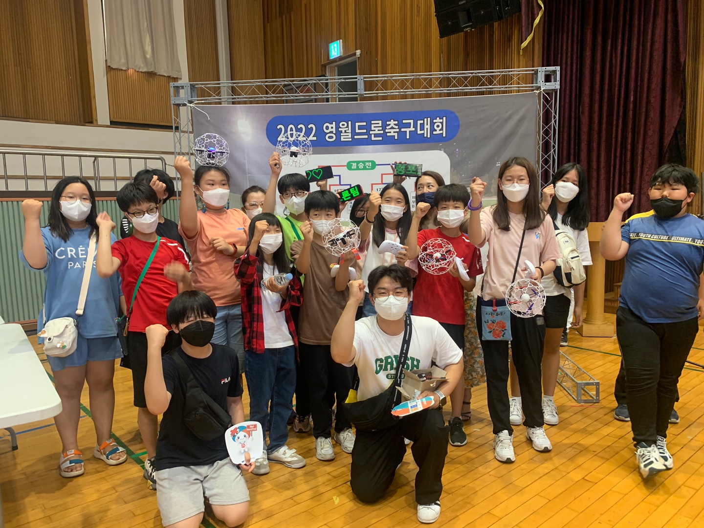 치열한 열기 속에서 경기가 진행된 가운데 도내 최초 제1회 영월드론축구대회의 최초 1위 드론으뜸상은 신천초등학교 드론축구팀(김진보 지도교사, 김필수, 김현빈, 박윤호, 안우진, 엄기송, 이준서 학생선수)이 차지했다. 또한 2위 드론버금상은 녹전초등학교 드론축구팀(조광진 지도교사, 남유나, 정해윤, 황루디아, 송한율, 홍성민, 강동혁 학생선수)에 돌아갔다. 공동3위 드론돋음상은 마차초등학교(김성하 지도교사, 임주원, 허정필, 한승우, 지성태, 김한별, 김보겸 학생선수)와 청령포초등학교(엄영현 지도교사, 김도현, 문영균, 박시연, 이정은, 이희재, 임효은 학생선수)가 성적을 거뒀다. 1위팀인 신천초등학교 드론축구팀은 영월군 유소년 드론축구 대표팀으로 임명받게 되며 1,2,3,4위 우승팀에는 교육장상, 트로피와 드론축구를 부상으로 전달했다. 이어 개인전 종목에서는 1위에는 21초만에 2골을 기록한 황루디아(녹전초)학생, 2위는 23초의 기록으로 김필수(신천초)학생이 이름을 올렸다.