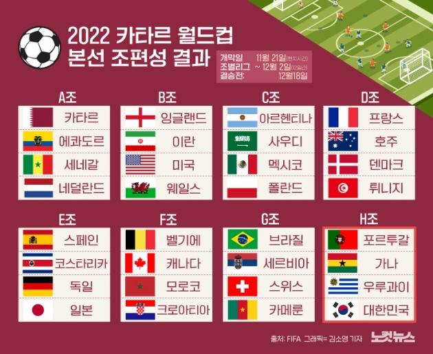 | H조 포르투갈 가나 우루과이 대한민국, 2022 카타르 월드컵 (0) | 2022.06.25 |