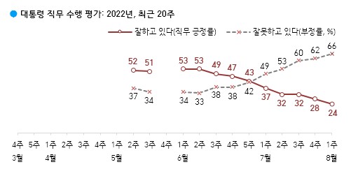 한국갤럽이 2022년 8월 첫째 주(2~4일) 조사결과를 발표했다.