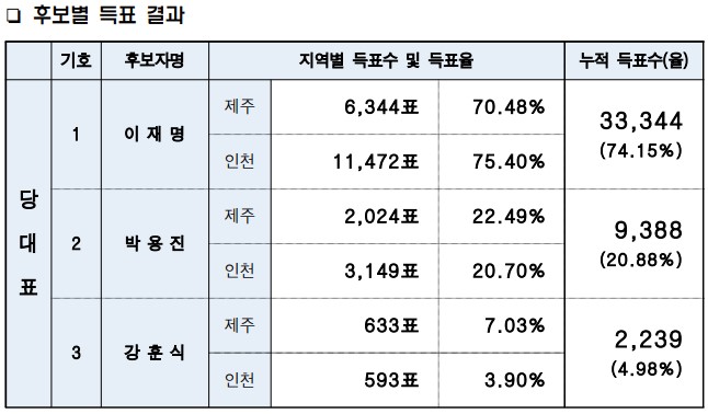 이재명 74.15%, 박용진 20.88%, 강훈식 4.98% 본문