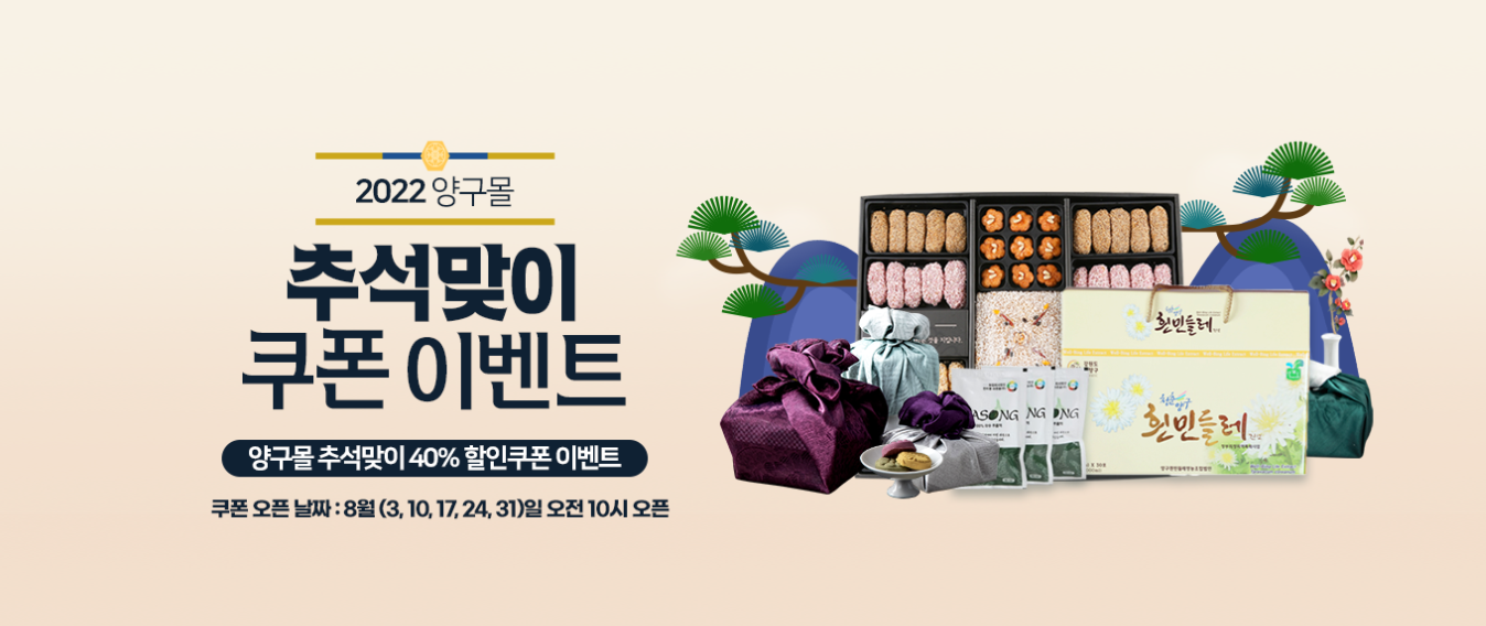 이번 기획전에는 양구지역에서 생산되는 한과, 꿀, 민들레 찐빵, 두유, 건강식품(민들레, 가시오가피 등) 등을 판매하며, 이벤트 기간 내 매주 수요일 오전 10시, 전 제품 40% 할인 쿠폰을 발행한다.