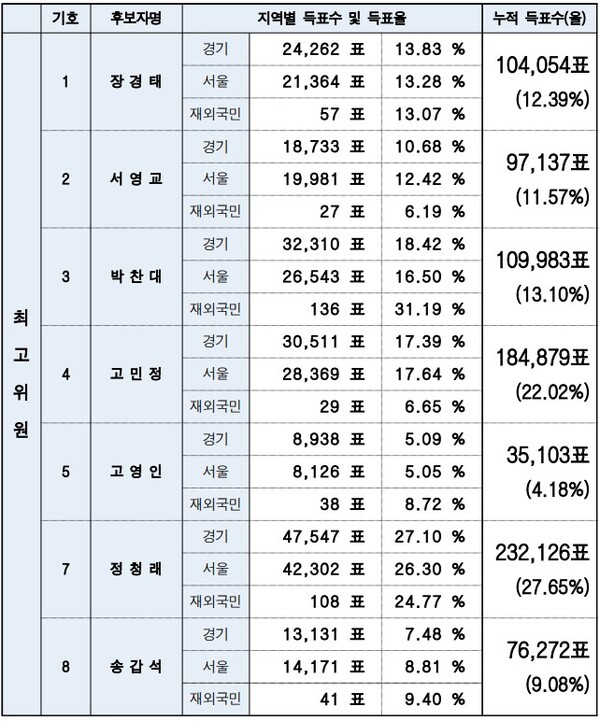 ◇ 최고위원, 정청래·고민정·박찬대·장경태·서영교 순...당선권