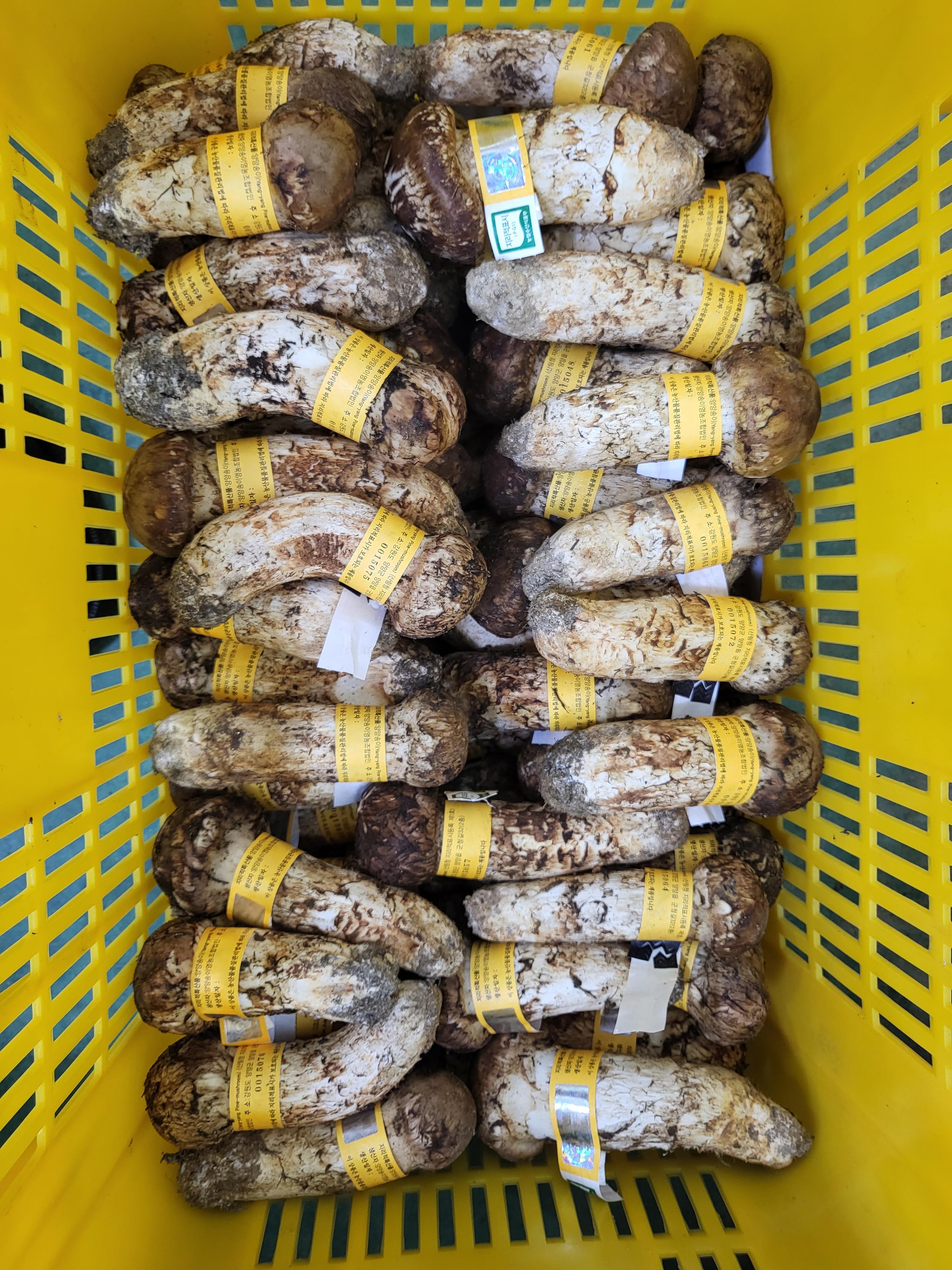 송이와 함께 공판을 진행한 능이는 114.43kg이 수매되어 1등급이 kg당 122,110원에 낙찰되었으며, 고무버섯은 35.34kg을 수매해 kg당 21,500원에 낙찰되었다.