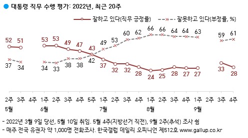 한국갤럽이 9월 넷째 주 정례조사를 발표했다.