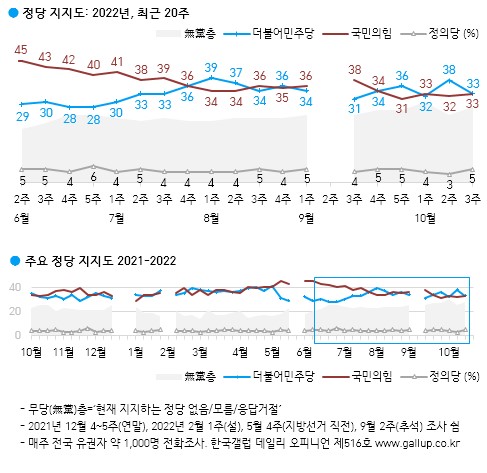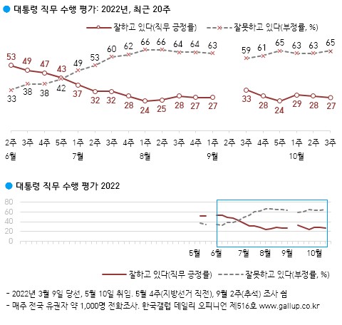 한국갤럽이 2022년 10월 셋째 주 정기 여론조사를 발표했다.