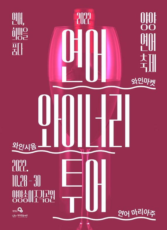“연어 희망을 품다”라는 슬로건으로 개최되는 이번 2022 양양연어축제에서 새롭게 준비한 프로그램이 관심을 끌고 있다. 와인과 연어의 만남이라는 테마로 기획된 ‘연어 와이너리 투어’를 통해 연어와 와인과의 만남을 준비하였다. 양양송이조각공원에서 개최되는 본 행사는 양양남대천의 조망과 함께 와인아카데미, 와인시음, 연어 마리아쥬를 만나볼 수 있는 색다른 기회를 제공한다. 특히 유료로 참여할 수 있는 프리미엄 와인 시음과 강연, 미식체험 등은 서둘러 예약을 해야 참여할 수 있다.