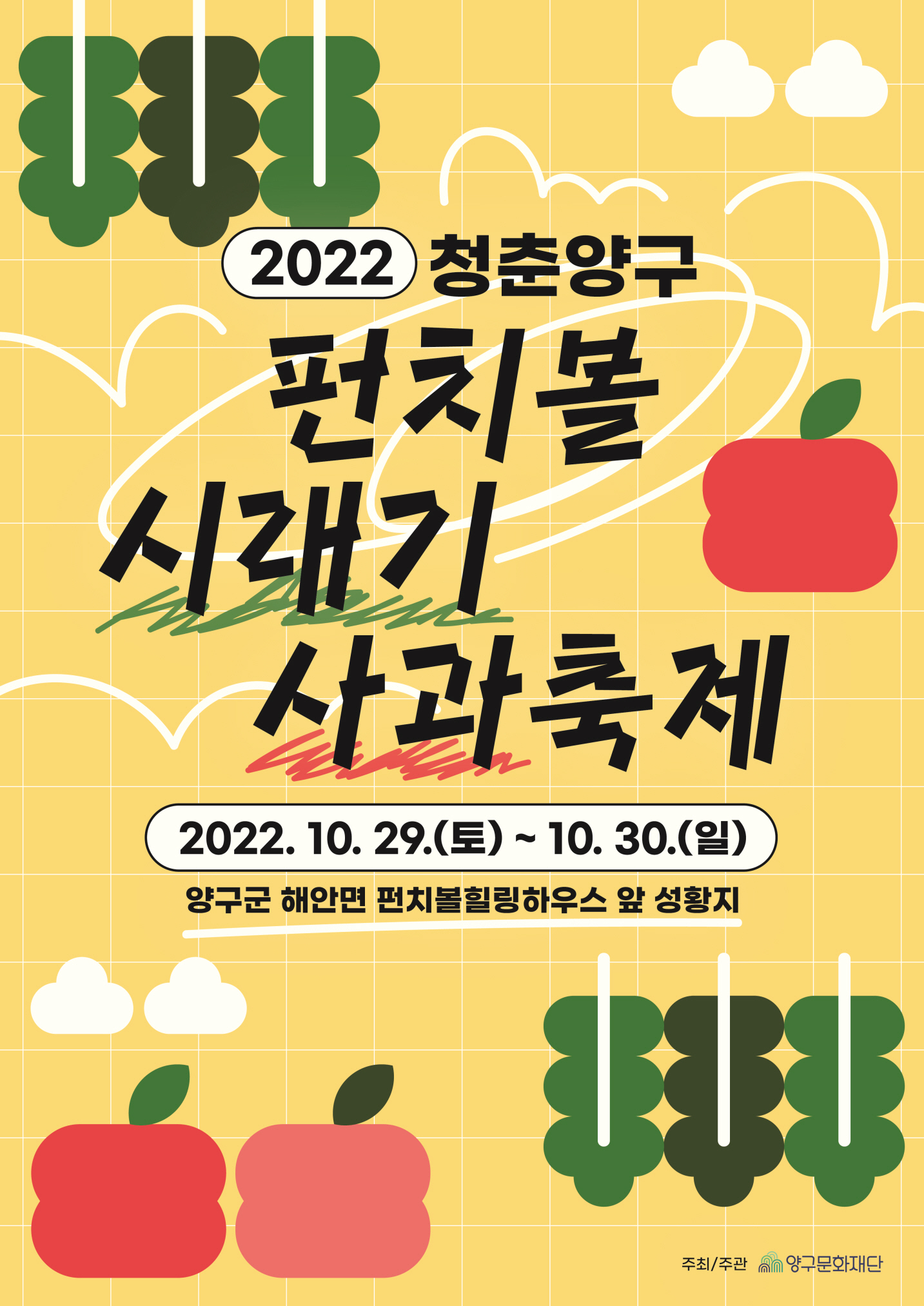 양구군은 양구의 대표 농산물인 시래기와 사과를 결합한 첫 번째 축제인 ‘2022 청춘양구 펀치볼 시래기 사과축제’를 오는 29일부터 이틀간 해안면 펀치볼 힐링하우스 앞 성황지 일원에서 개최한다.
