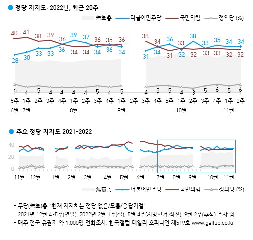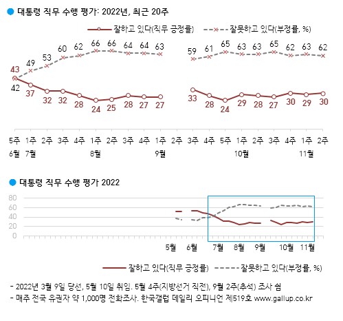 한국갤럽이 2022년 11월 둘째주(8~10일) 정기여론조사를 발표했다.