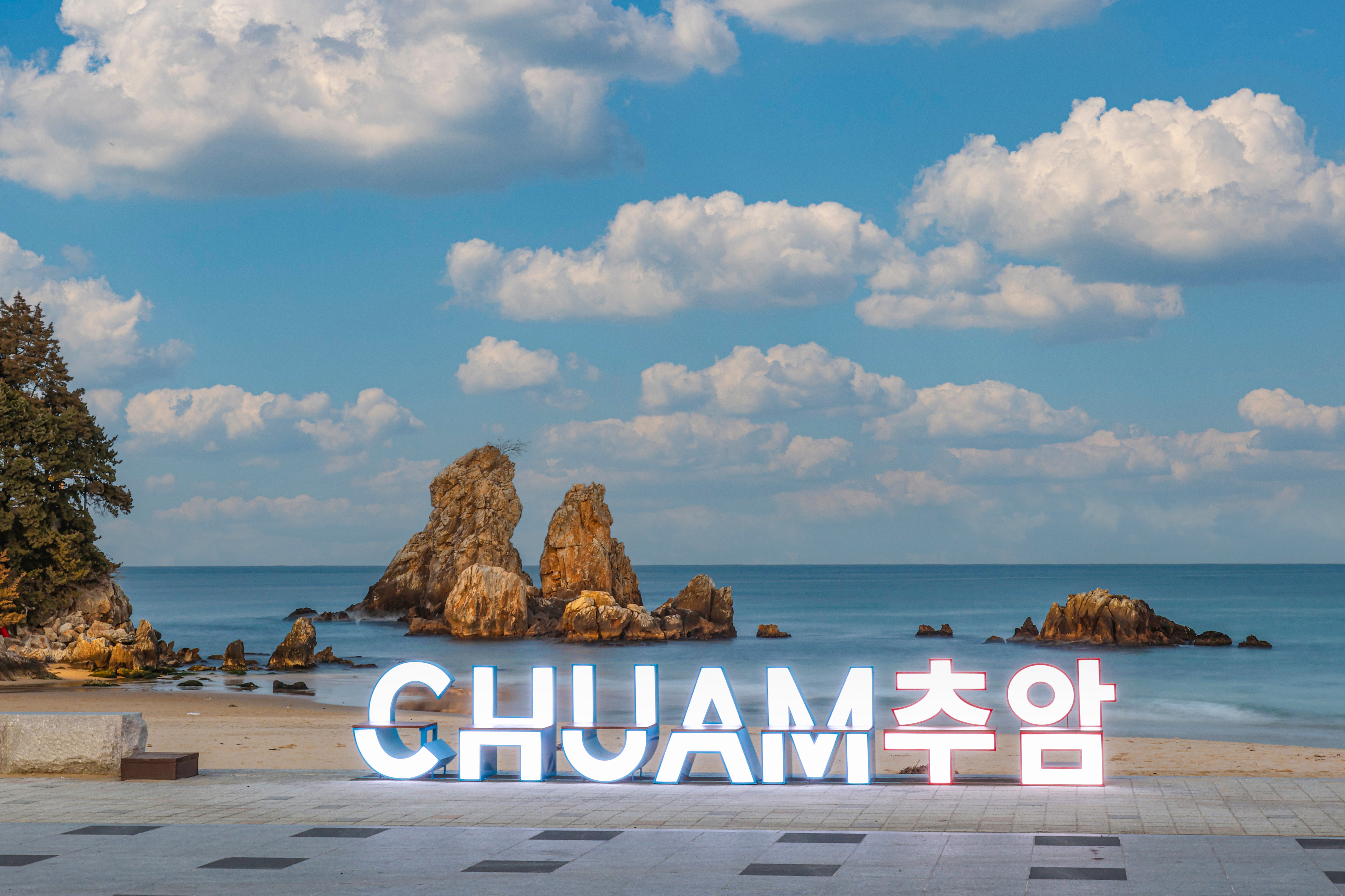 이번에 동해시가 추암(CHUAM. ㅊ ㅜ ㅇ ㅏ ㅁ )글자를 이용하여 설치한 조형물은 낮에는 의자로서, 야간에는 빛으로 추암을 알리는 랜드마크 포토존으로 활용하게 된다.