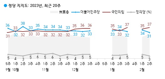 ◇정당 지지도: 국민의힘 37%, 더불어민주당 31%