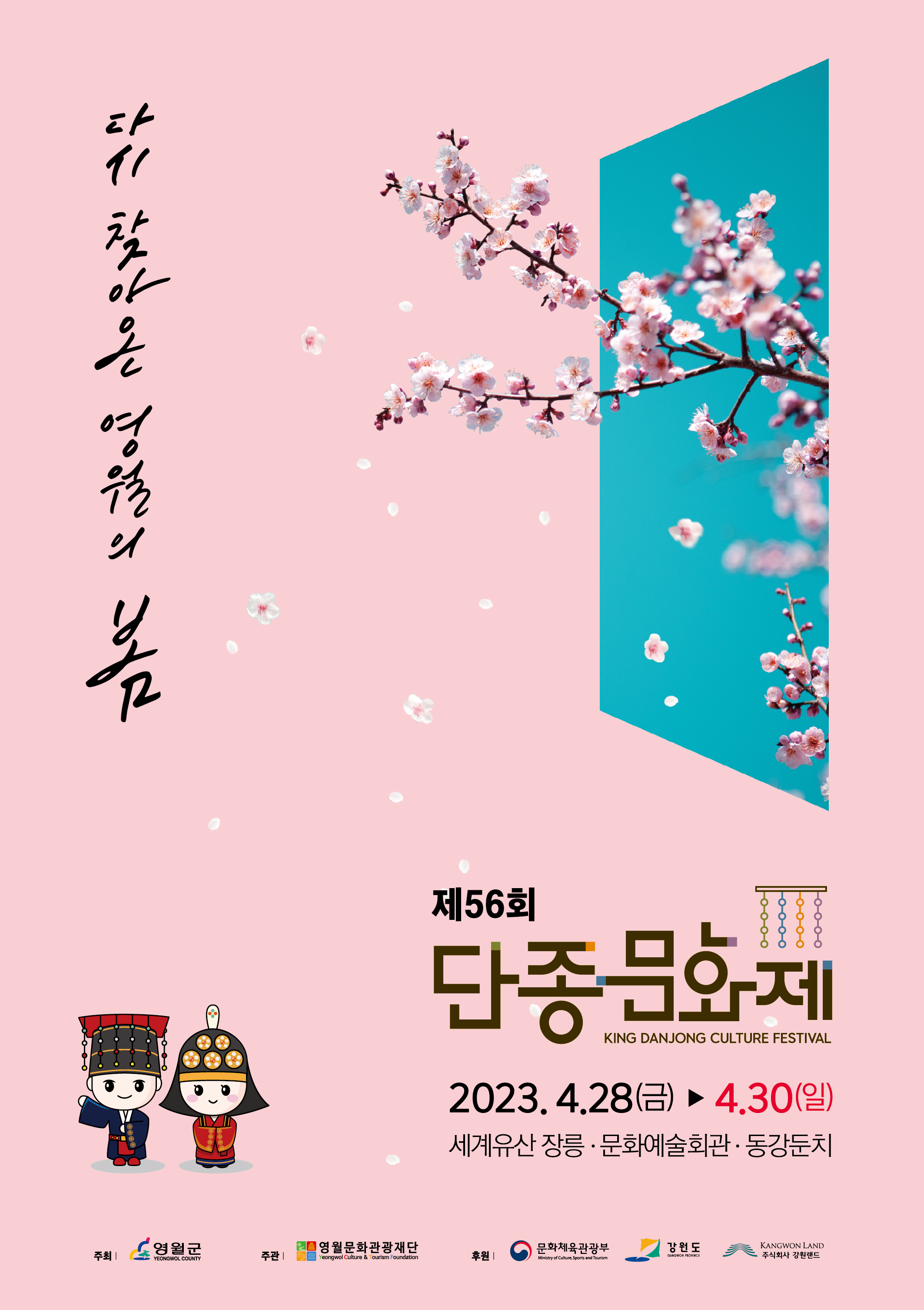 특히 올해 단종문화제는 코로나 바이러스 인해 4년 만의 대면 행사 진행으로 ‘다시 찾아온 영월의 봄’이라는 키워드를 가지고 4월의 봄날에 맞는 행사장을 선보일 예정이다.
