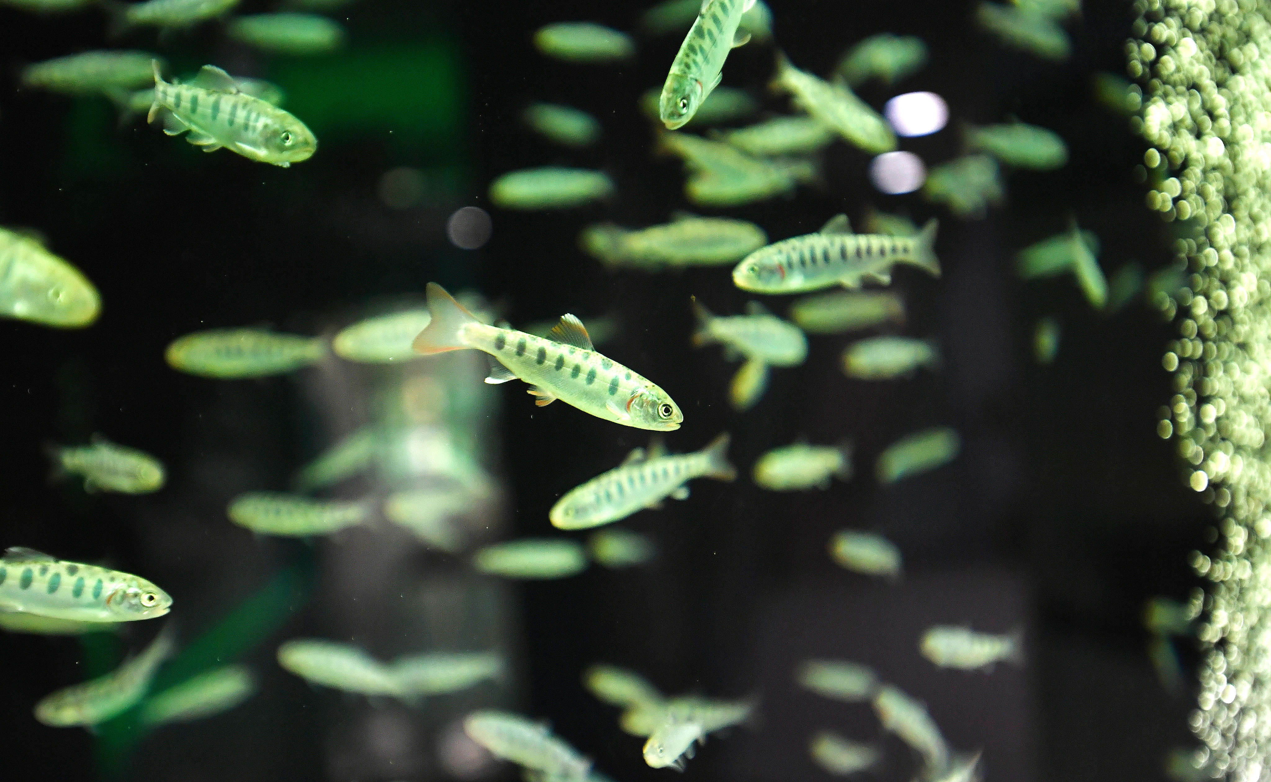 내달 30일까지 이어지는 이번 무료 전시전에는 산천어와 연어, 무지개 송어, 황금송어 등 냉수성 어린 고기 약 2,000여마리가 선을 보인다.