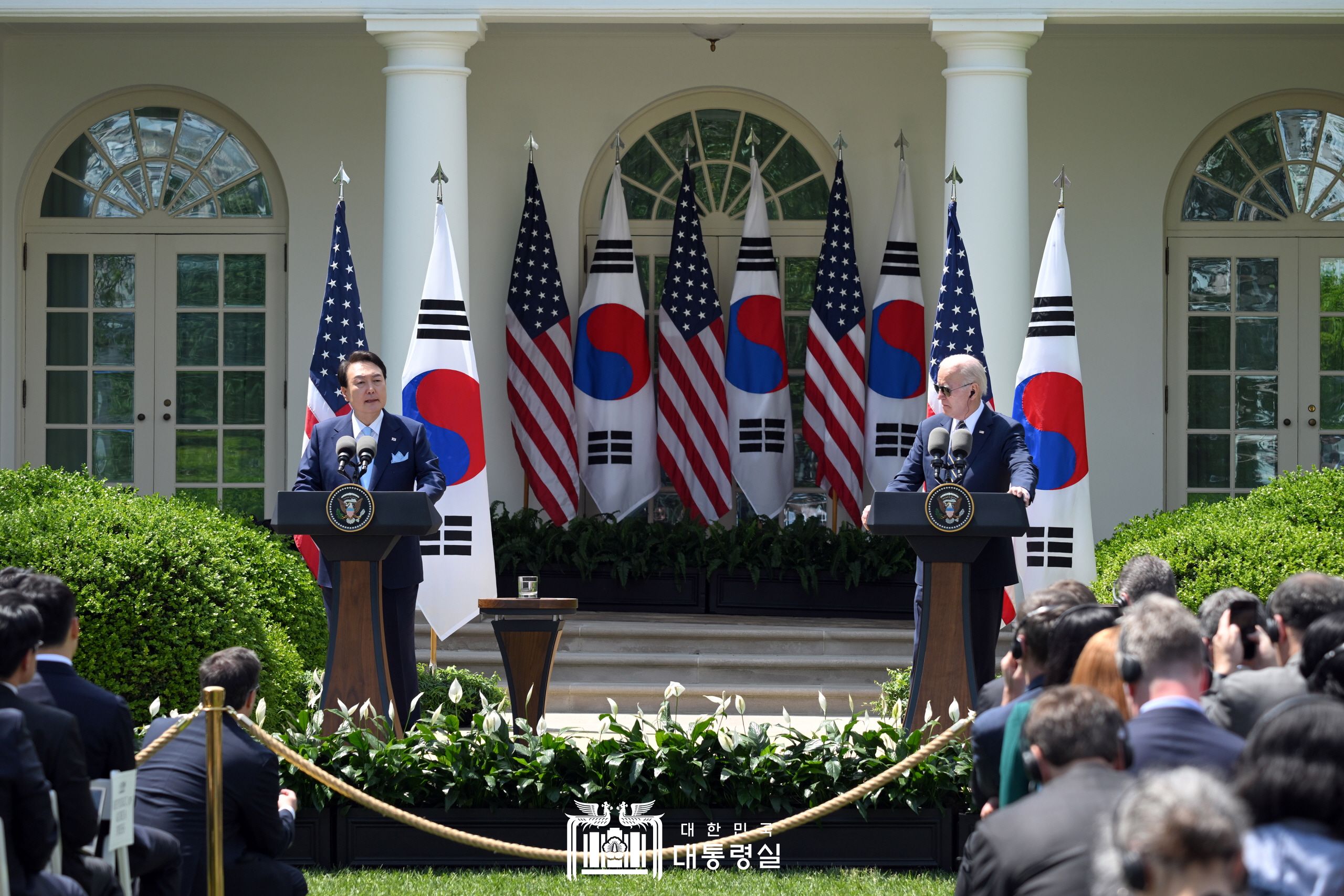 바이든 대통령과 윤 대통령은 한반도에서의 지속적인 평화를 달성할 수 있는 유일한 수단으로서 북한과의 외교에 대한 의지를 재확인하며, 북한이 협상으로 복귀할 것을 촉구한다. 양 정상은 한반도의 모든 구성원들을 위해 더 나은 미래를 만들어 나가기로 하고, 자유롭고 평화로운 통일 한반도를 지지한다. 한미 양국은 가장 취약한 북한 주민들에게 인도적 지원을 제공할 준비가 되어 있으며, 북한 내 인권을 증진하고 납북자, 억류자, 미송환 국군포로 문제를 해결하기 위한 협력을 강화할 것이다. 바이든 대통령은 대한민국의 ‘담대한 구상’의 목표에 대한 지지를 재확인하였다. 양국은 북한이 북한 주민의 인권과 존엄성을 노골적으로 침해하고, 희소한 자원을 대량살상무기(WMD) 개발에 투입하는 결정을 내림으로써 한미동맹에 심각한 안보적 도전을 야기하는 것을 규탄한다. 이러한 맥락에서 양 정상은 북한의 핵・탄도미사일 프로그램을 규탄하며 이러한 개발을 중단할 것을 촉구한다. 한미 양국은 북한과 개인 및 단체의 유엔 안보리 결의 위반 행위에 대응하기 위해 유엔 안보리 및 국제사회와 협력해 나가기로 하였다. 바이든 대통령과 윤 대통령은 한반도의 완전한 비핵화를 위한 공약을 재확인하고, 북한의 핵실험이 국제사회의 강력하고 단호한 대응에 직면할 것임을 재확인한다.