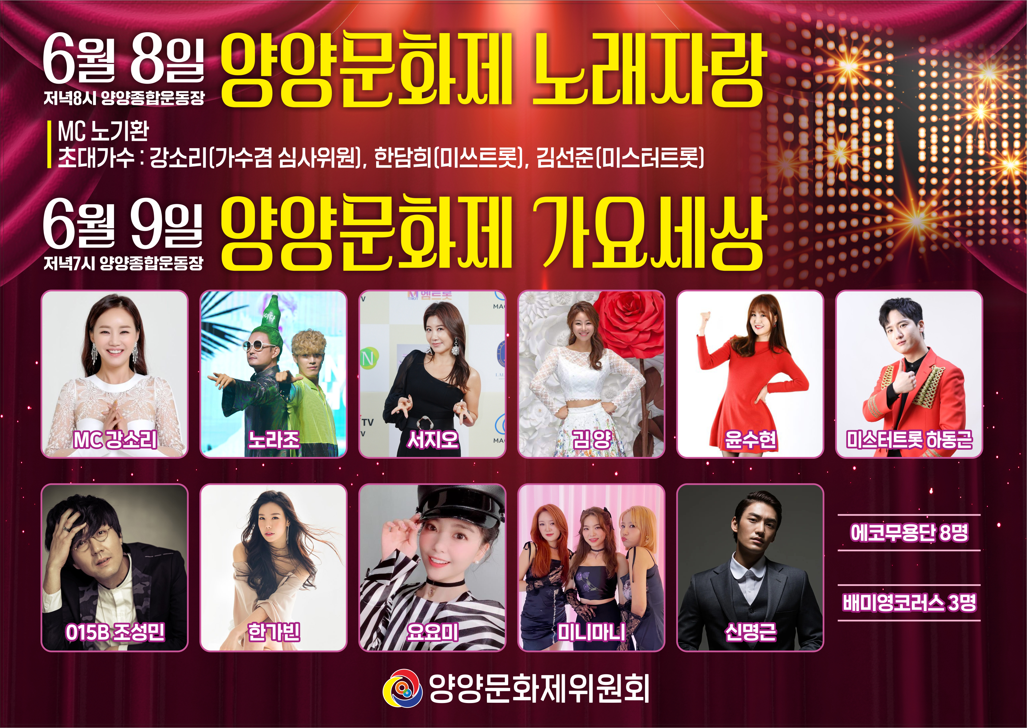 양양군민의 대화합 향토문화축제인 제45회 양양문화제가 6월 8일부터 10일까지 3일간 양양종합운동장 일원에서 개최된다.