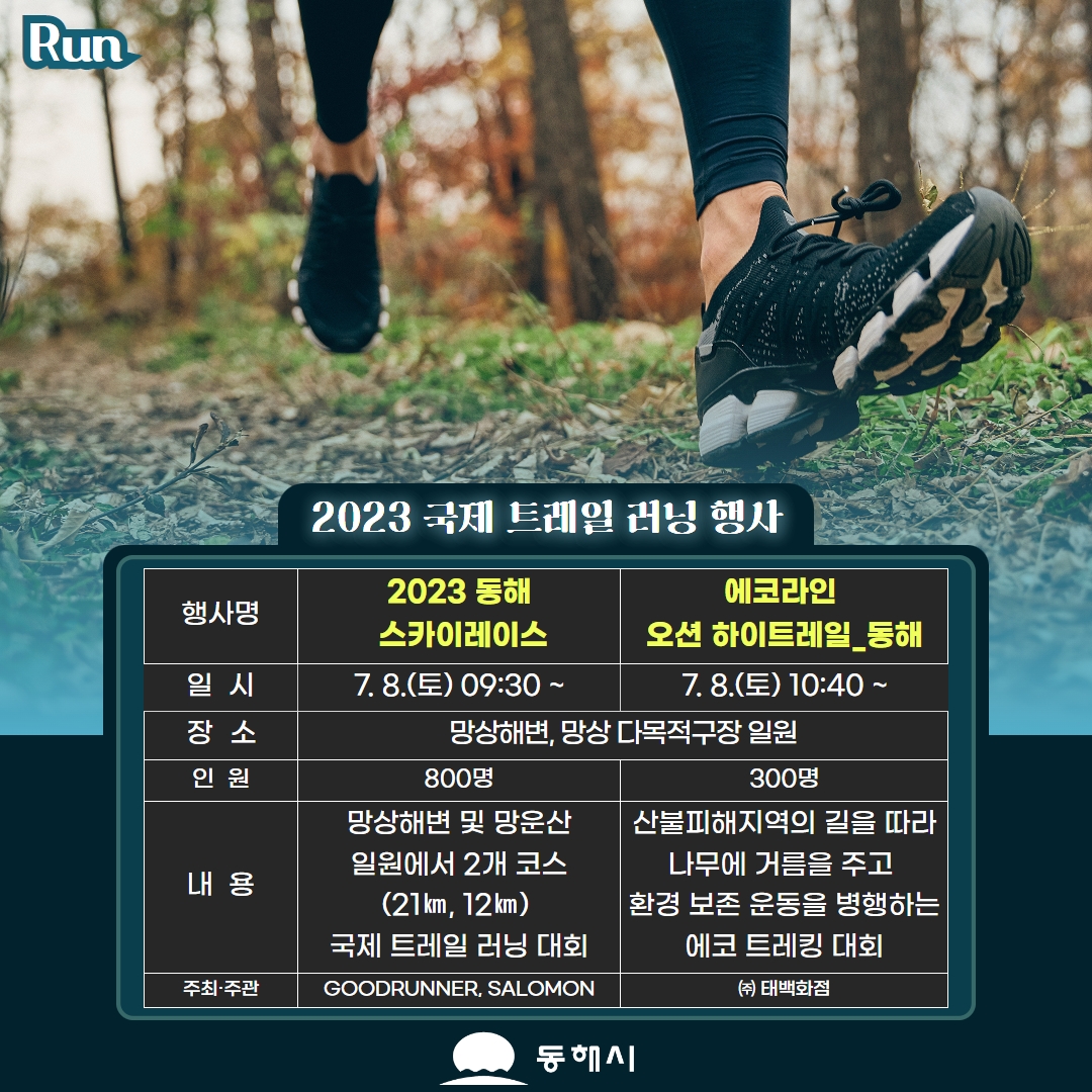 '2023 동해 스카이레이스’는 국제적인 트레일 러닝 레이스 중 가장 상징적인 골든 트레일 내셔널시리즈로, 국내에서는 최초로 개최되는 국제대회이다.