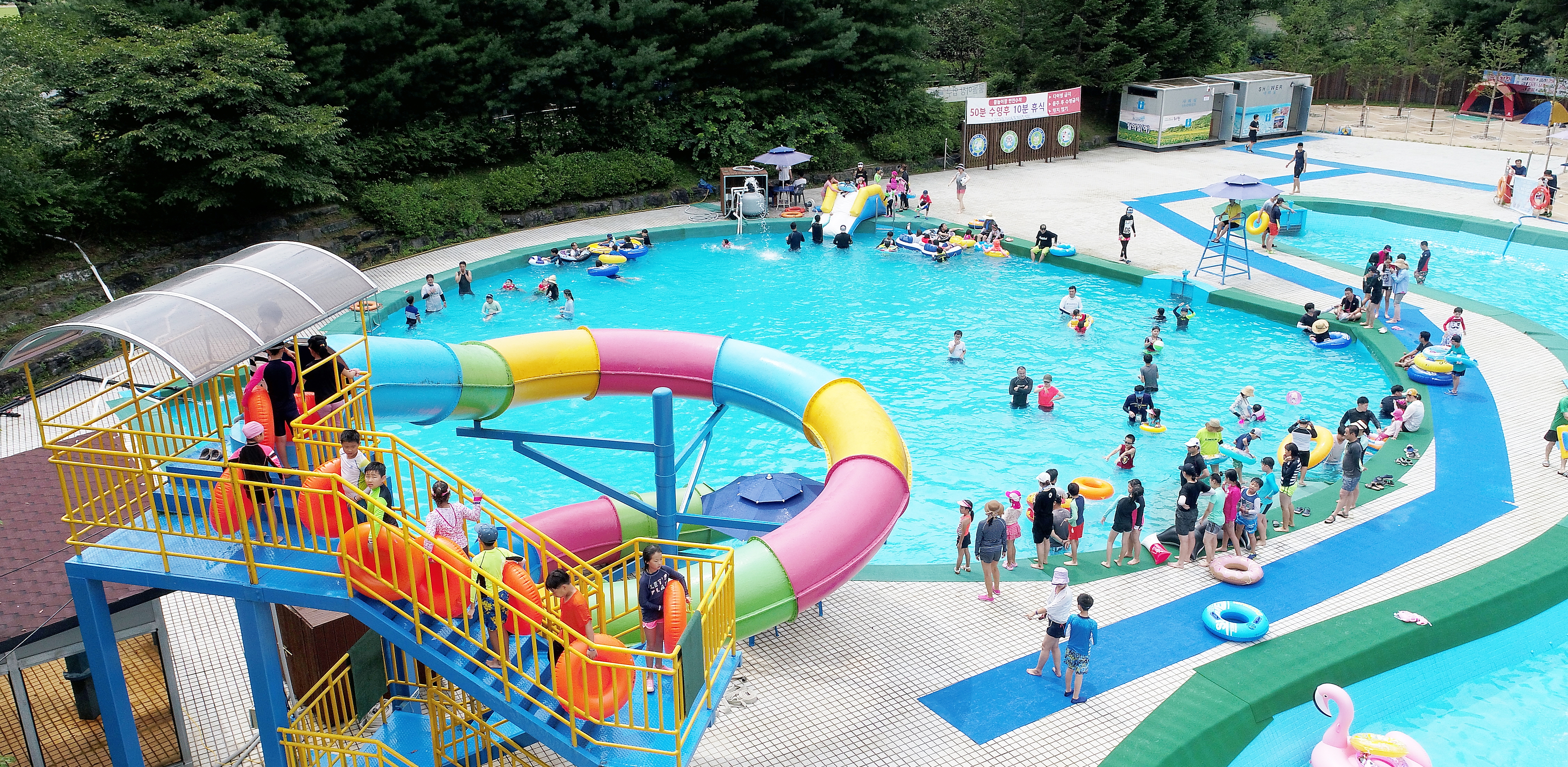 물놀이장은 풀장을 비롯해 대형 워터 슬라이드, 평상촌, 안개터널, 테마 포토존 등을 이용할 수 있다.