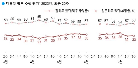 한국갤럽이 2023년 7월 셋째 주(18~20일) 정기 여론조사를 발표했다.