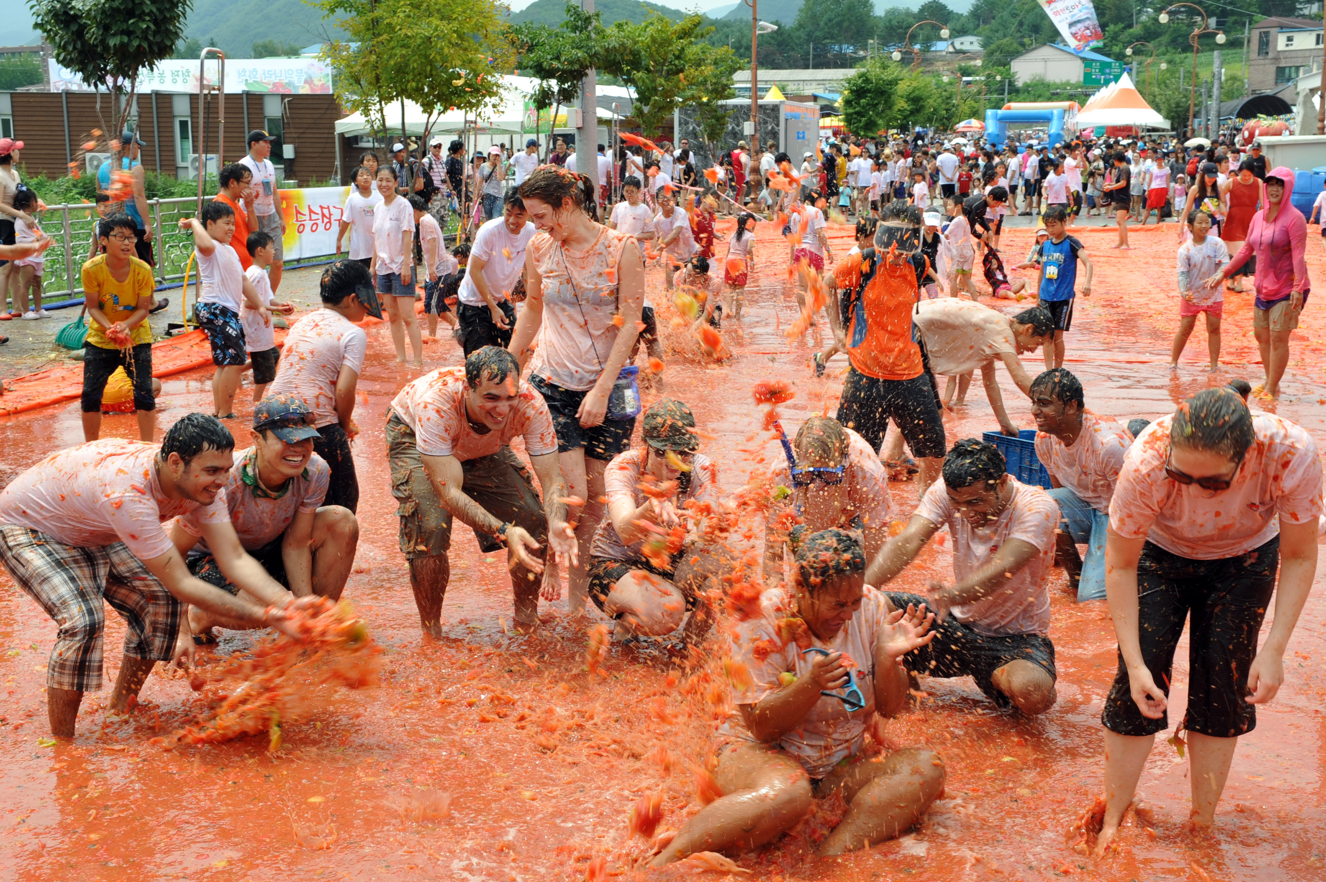 토마토가 가득한 이벤트존에서는 축제의 킬링 콘텐츠인 ‘황금반지를 찾아라’, 올림픽 5종게임, 15사단 줄다리기 등 관광객 참여 프로그램이 쉴 새 없이 이어진다.