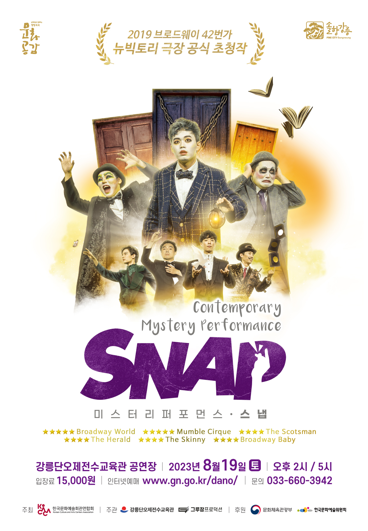 일루젼, 미디어아트, 그림자놀이, 마임 등을 마술과 결합해 독창적인 무대언어로 풀어낸 기획공연「스냅」이 오는 19일(토) 오후 2시, 5시 총 2회에 결쳐 강릉단오제전수교육관 공연장에서 펼쳐진다.