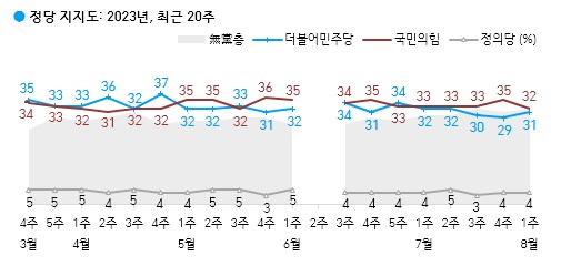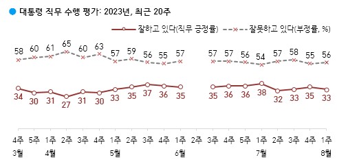 한국갤럽이 2023년 8월 첫째 주(1~3일) 정기 여론조사를 발표했다.