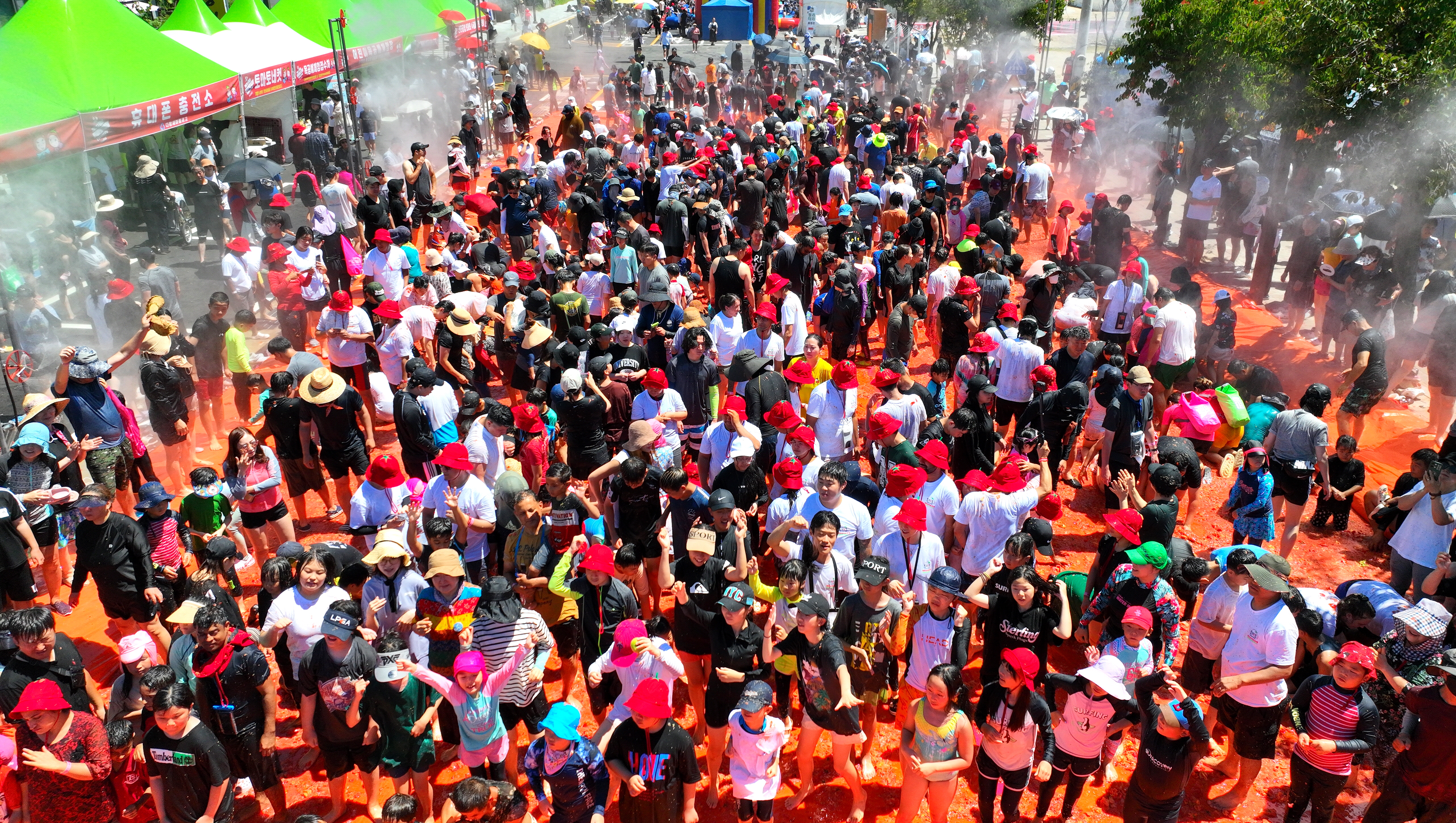 2023 화천토마토축제의 붉은 열기가 주말을 맞아 절정으로 치닫고 있다.