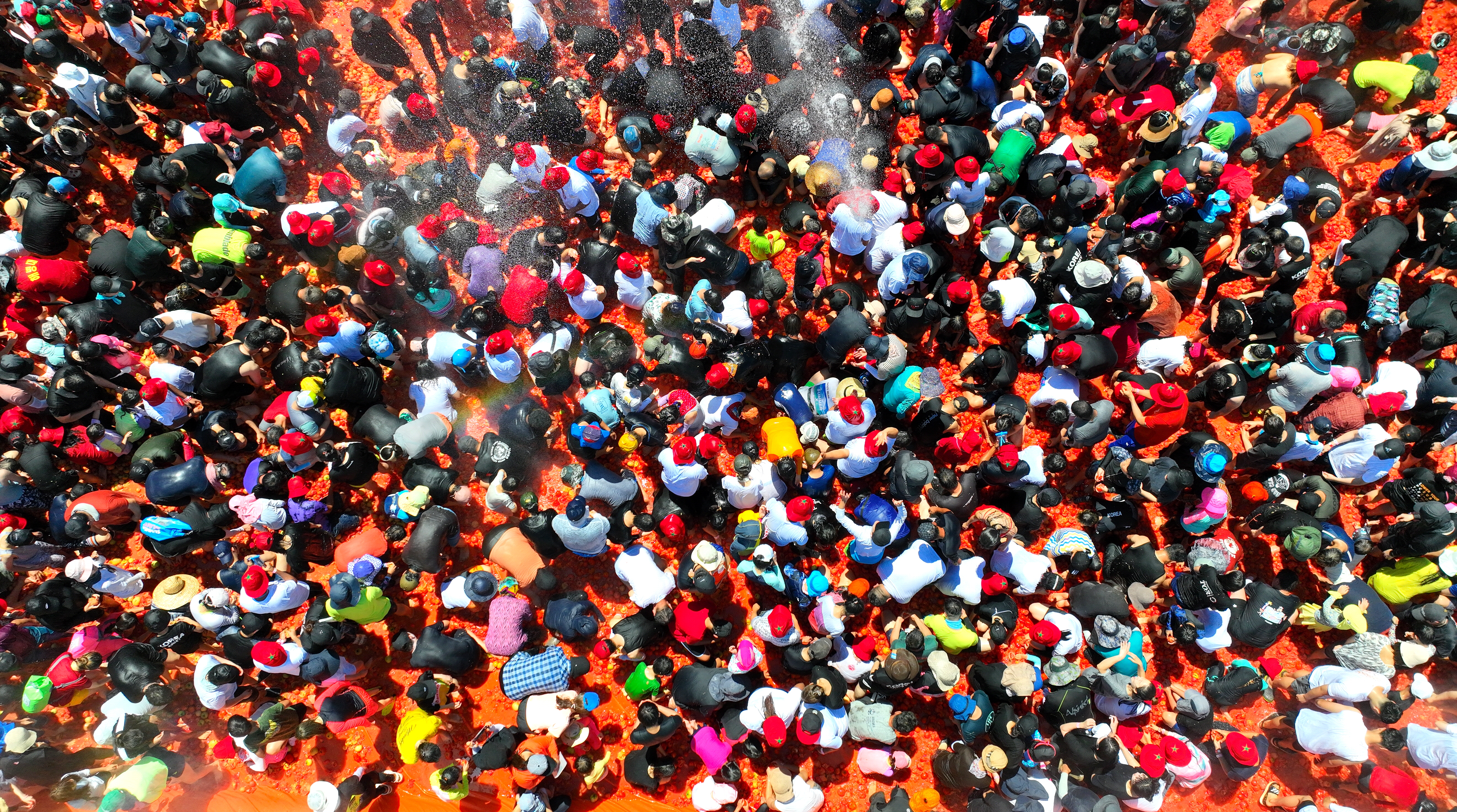 황금반지 이벤트에서는 회당 1,000여 명이 훌쩍 넘는 관광객들이 토마토의 붉은 바다에 몸을 던졌다.