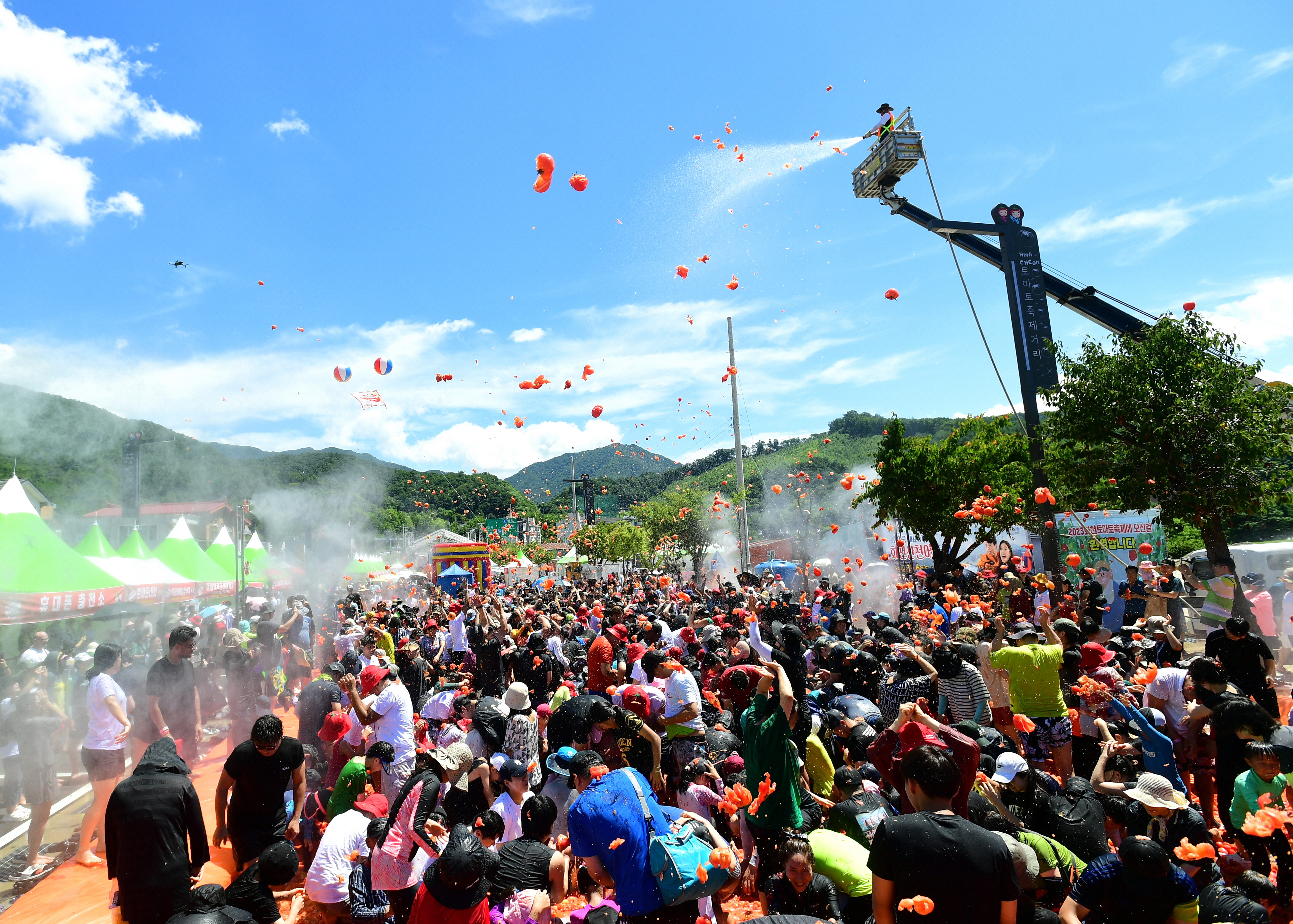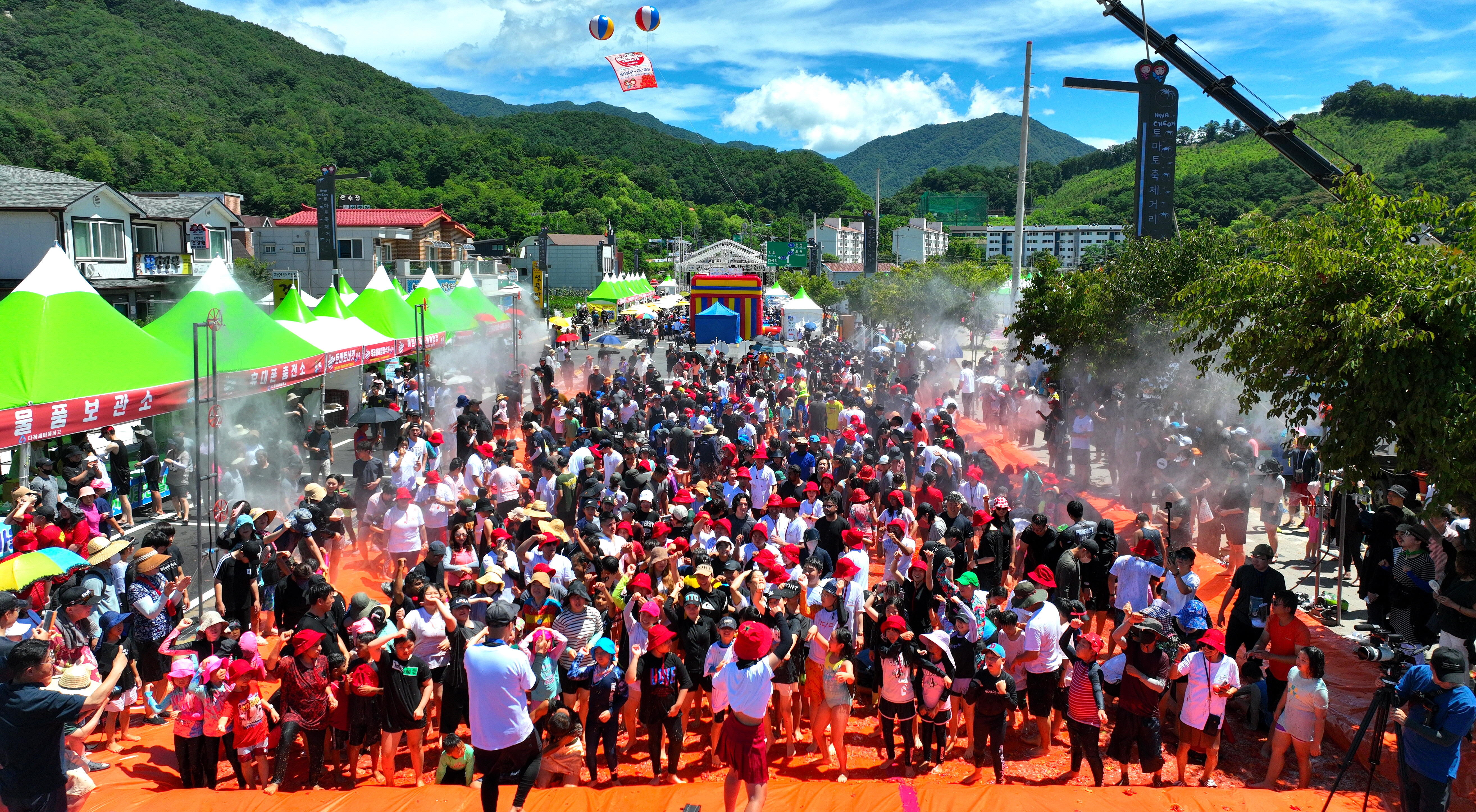 2023 화천토마토축제의 붉은 열기가 주말을 맞아 절정으로 치닫고 있다.