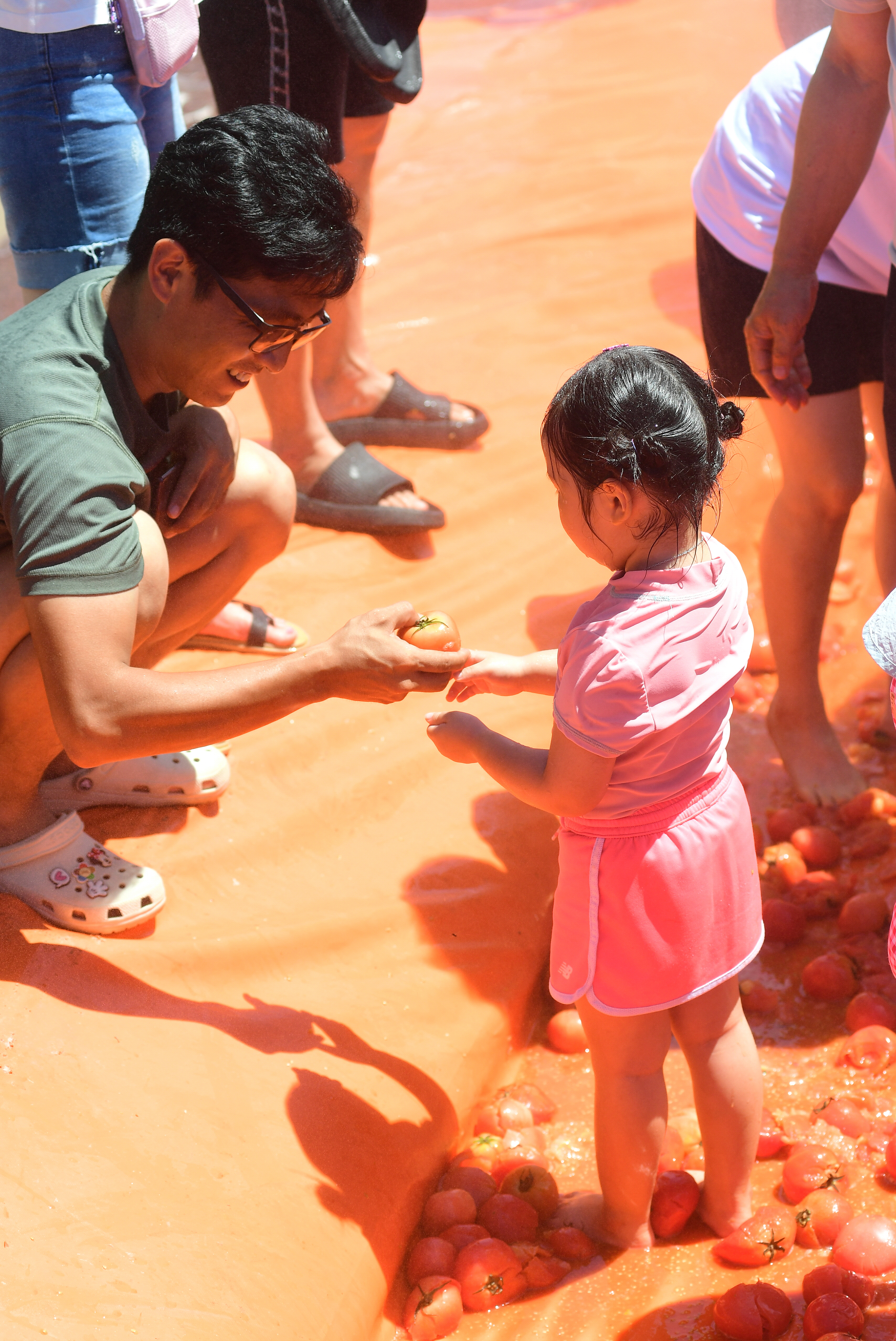 주말을 맞아 아이들과 함께 축제장을 찾은 가족 단위 관광객들부터 군장병, 면회객, 지역주민들까지, 1년 만에 돌아온 토마토 세상을 온몸으로 만끽했다.