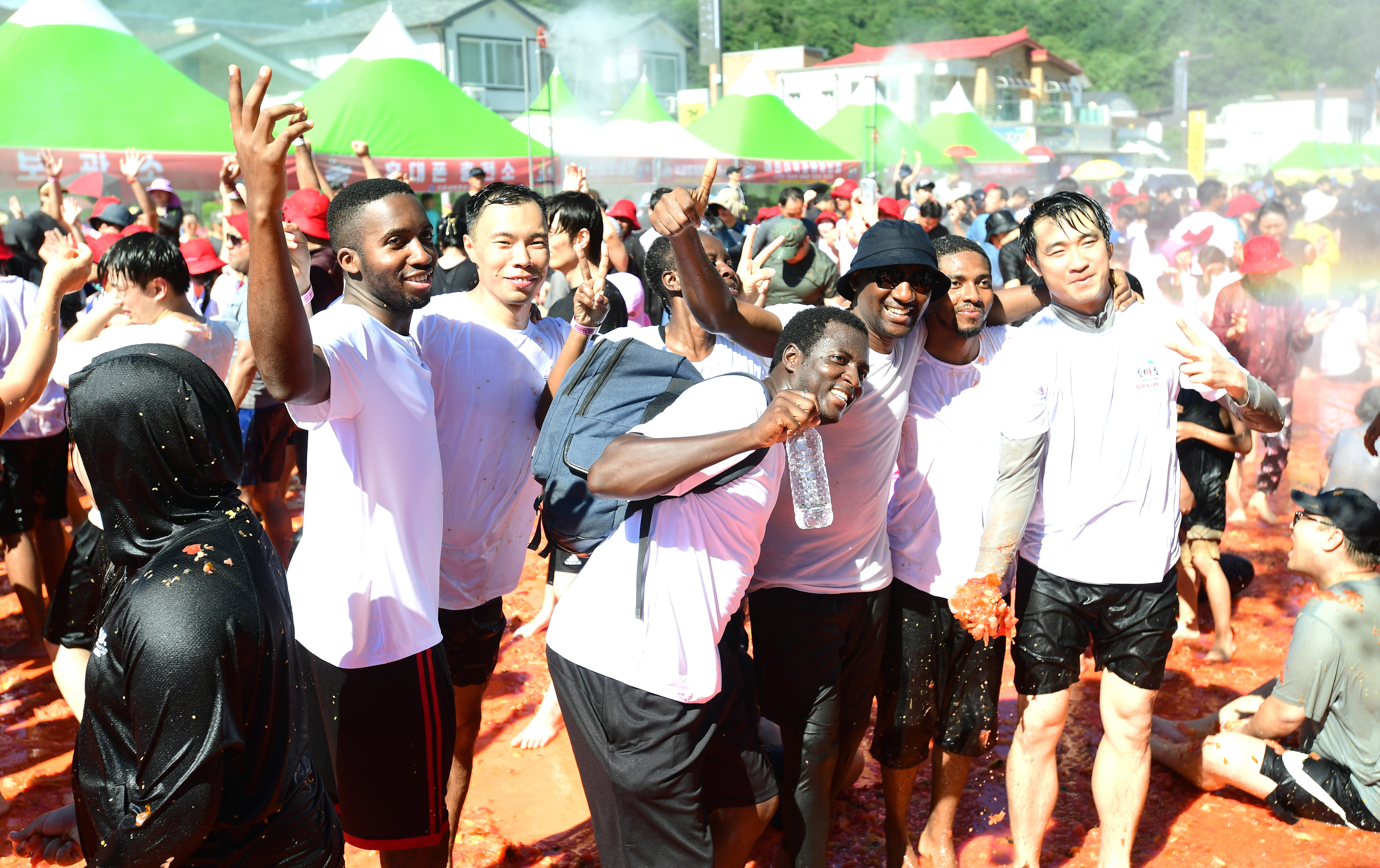 외국인 관광객들도 축제장을 찾아 이색적인 토마토 프로그램을 즐겼다.