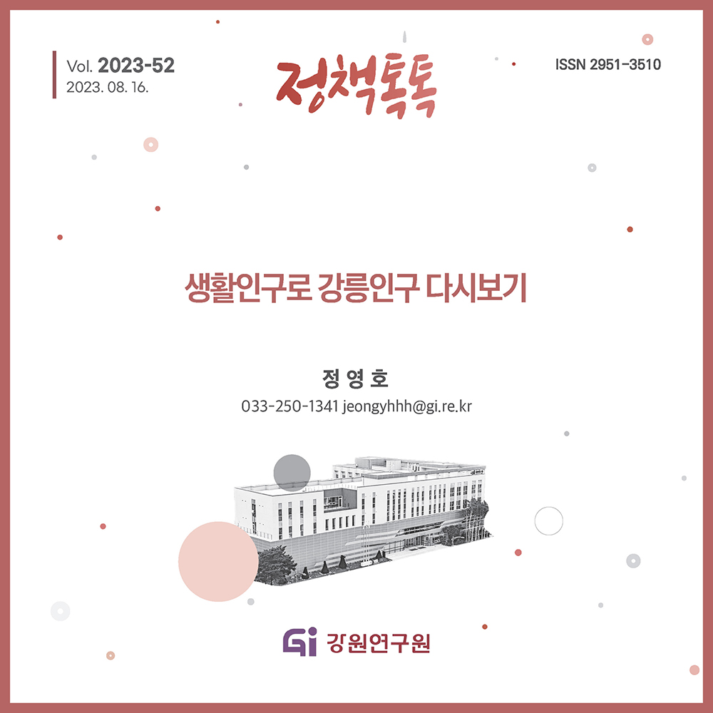 강원연구원은 8월 16일 정영호는 '생활인구로 강릉인구 다시보기'라는 연구를 발표했다.
