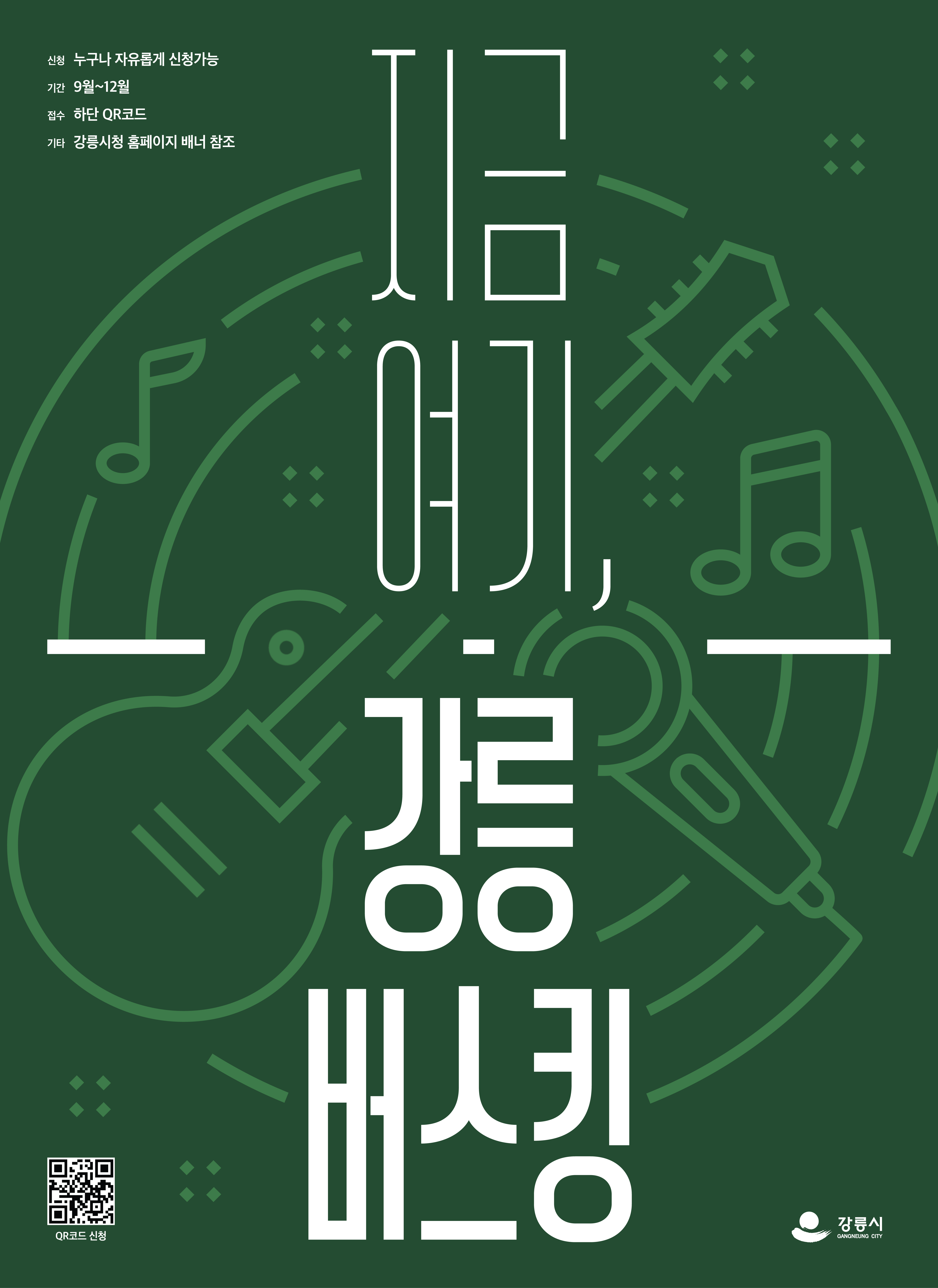 이화정 문화예술과장은 “강릉의 평범한 장소가 버스킹 선율로 채워져 특별한 무대로 바뀌는 경험을 할 수 있는 <지금 여기, 강릉 버스킹>에 많은 관심과 참여를 부탁드린다.”고 말했다.