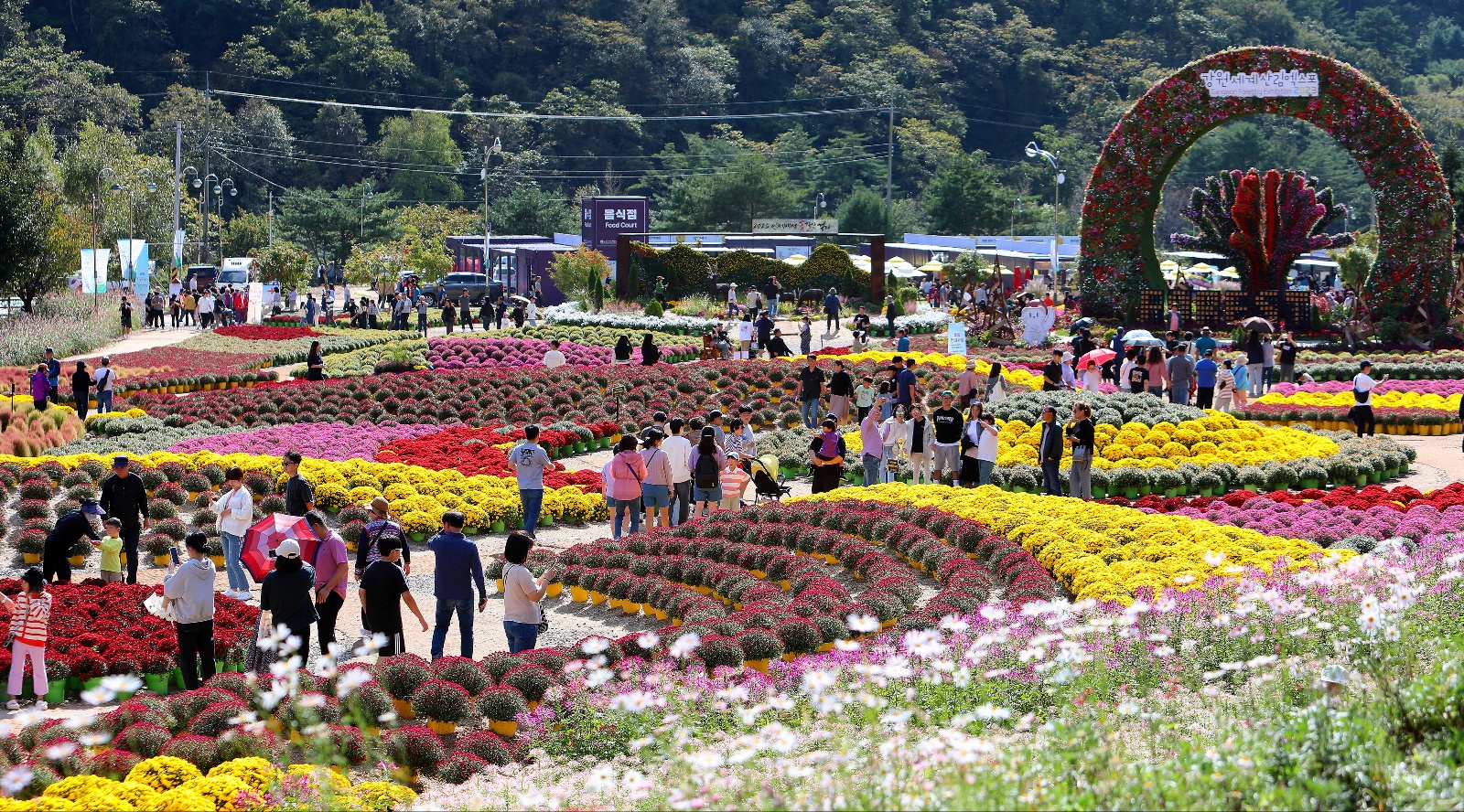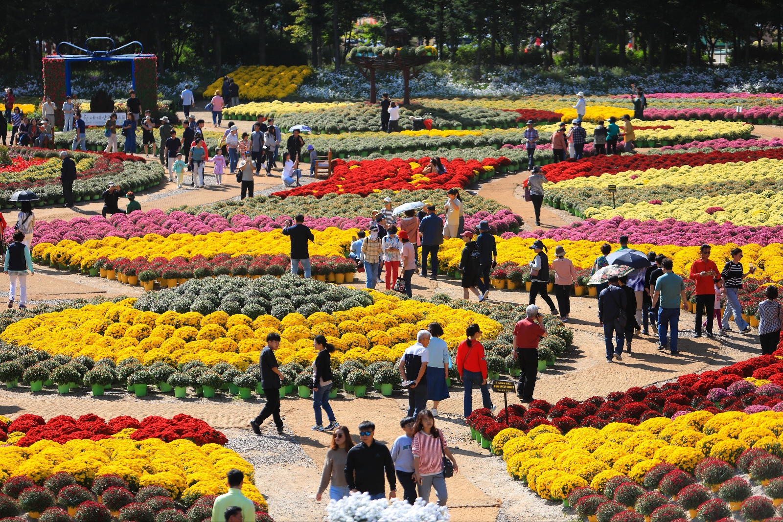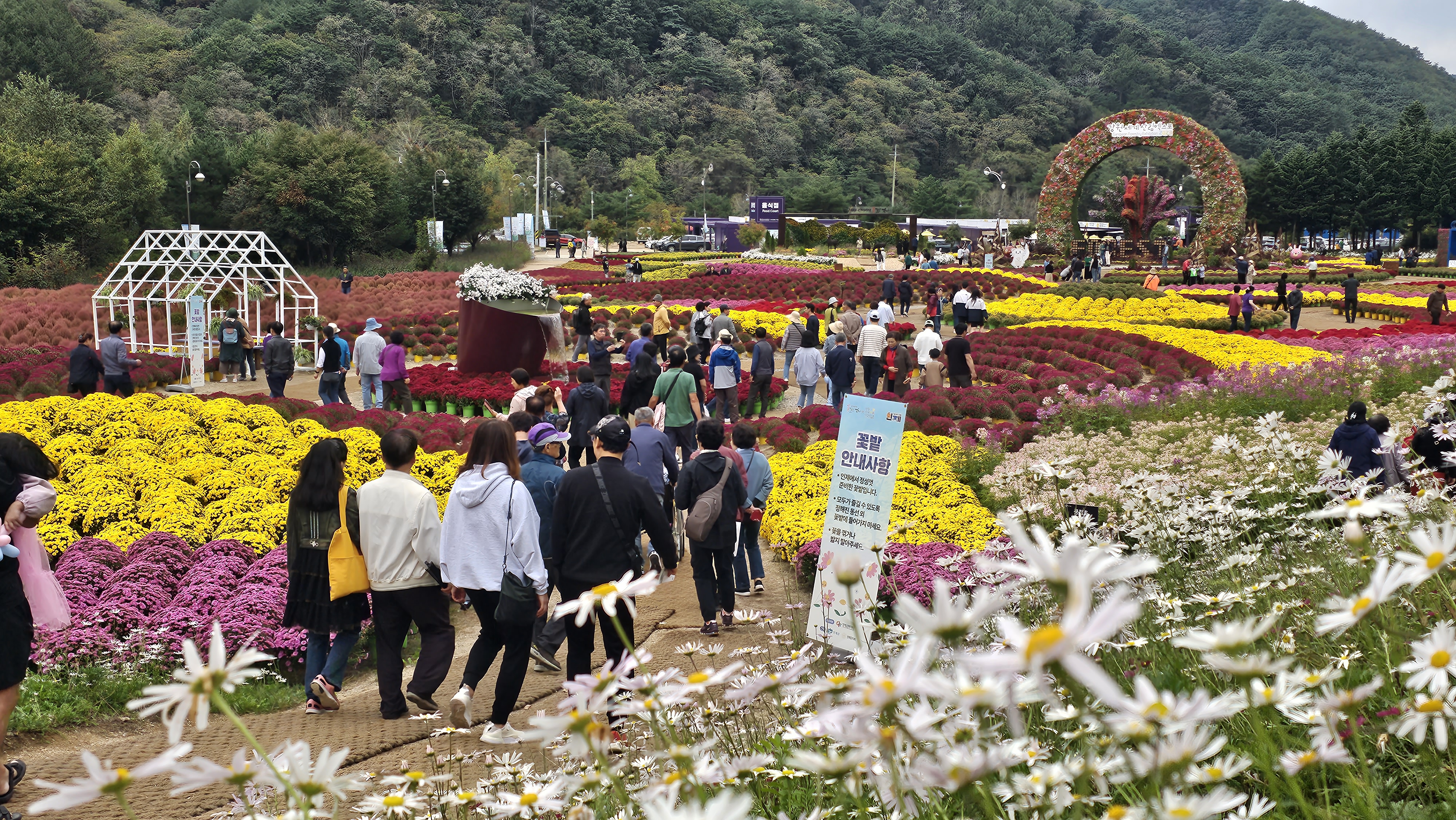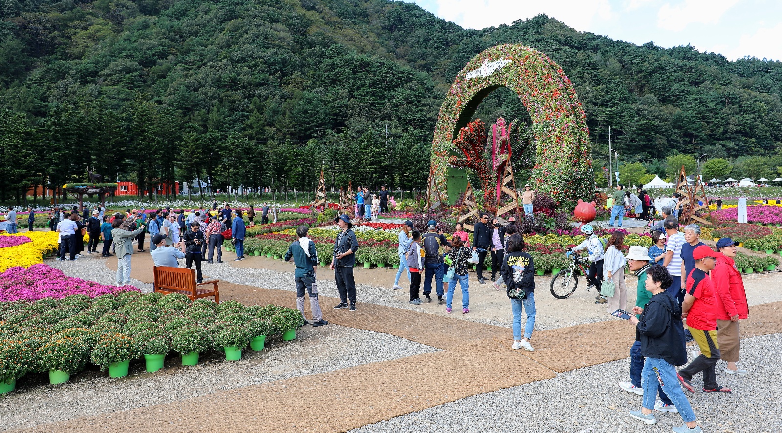 특히 32만 주 가을꽃과 꽃조형물로 꾸며진 정원, 폭포와 분수·꽃배가 어울어진 수변둘레길, 울창한 소나무 숲을 따라 걷다 보면 물들어가는 가을의 정취를 물씬 느낄 수 있다. 지난 황금연휴 축제장에는 가을꽃의 향연을 즐기려는 사람들의 발길이 끊이지 않았다.