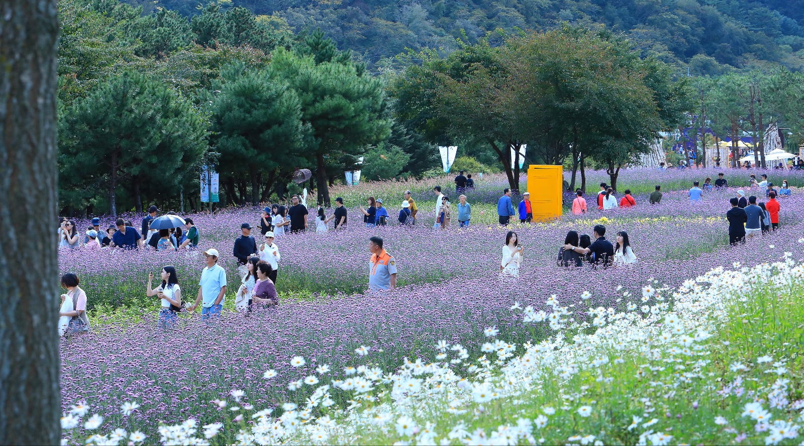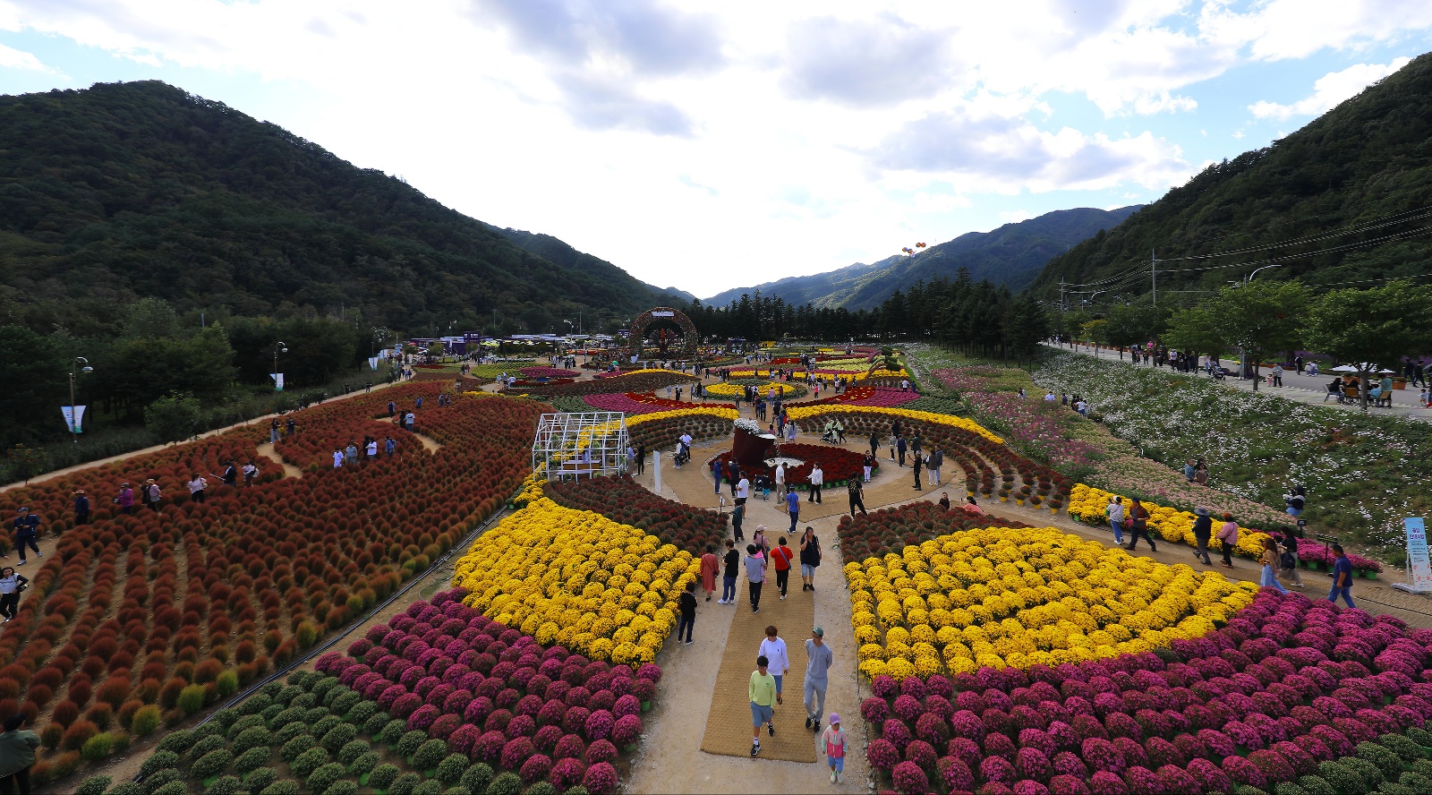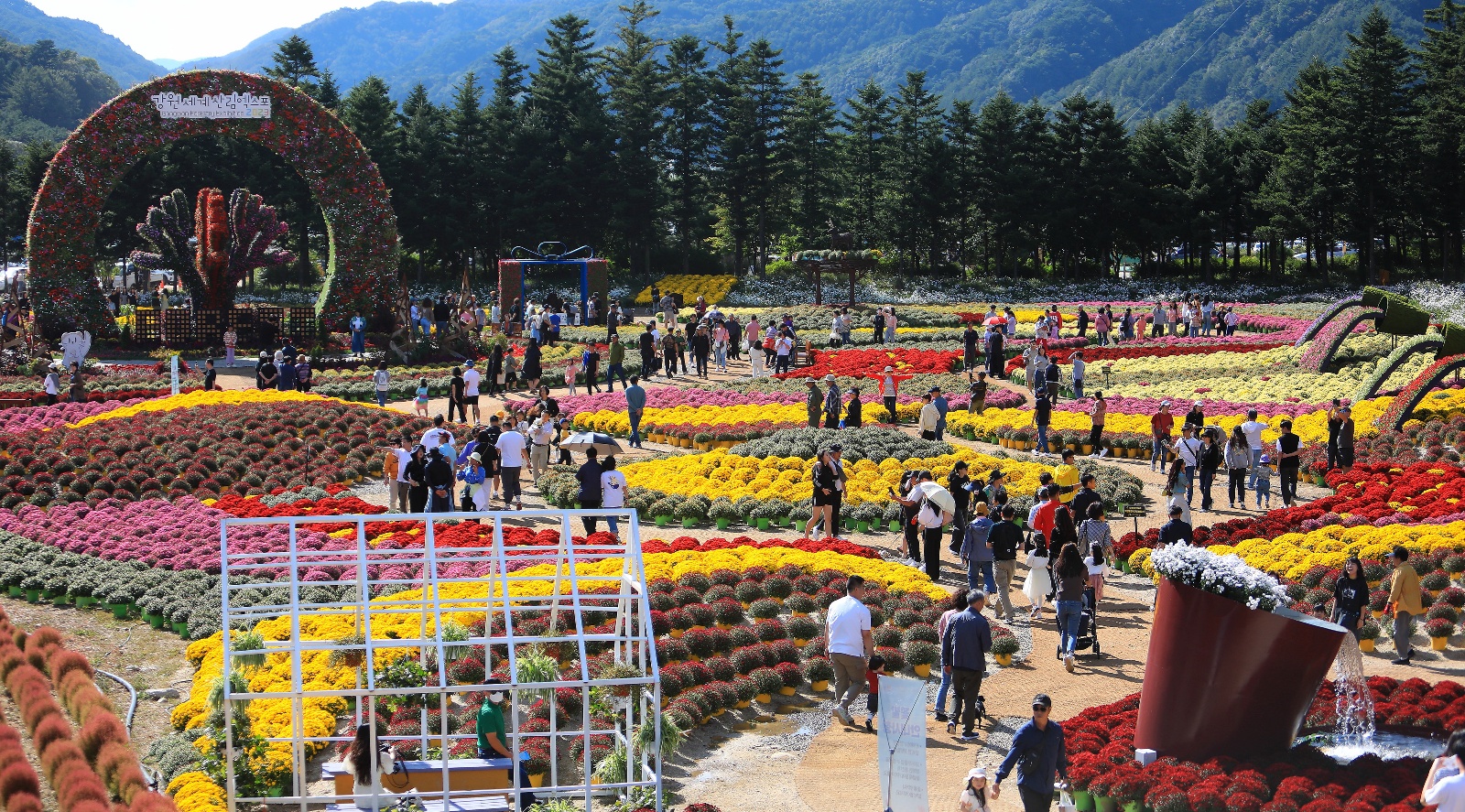 특히 32만 주 가을꽃과 꽃조형물로 꾸며진 정원, 폭포와 분수·꽃배가 어울어진 수변둘레길, 울창한 소나무 숲을 따라 걷다 보면 물들어가는 가을의 정취를 물씬 느낄 수 있다. 지난 황금연휴 축제장에는 가을꽃의 향연을 즐기려는 사람들의 발길이 끊이지 않았다.