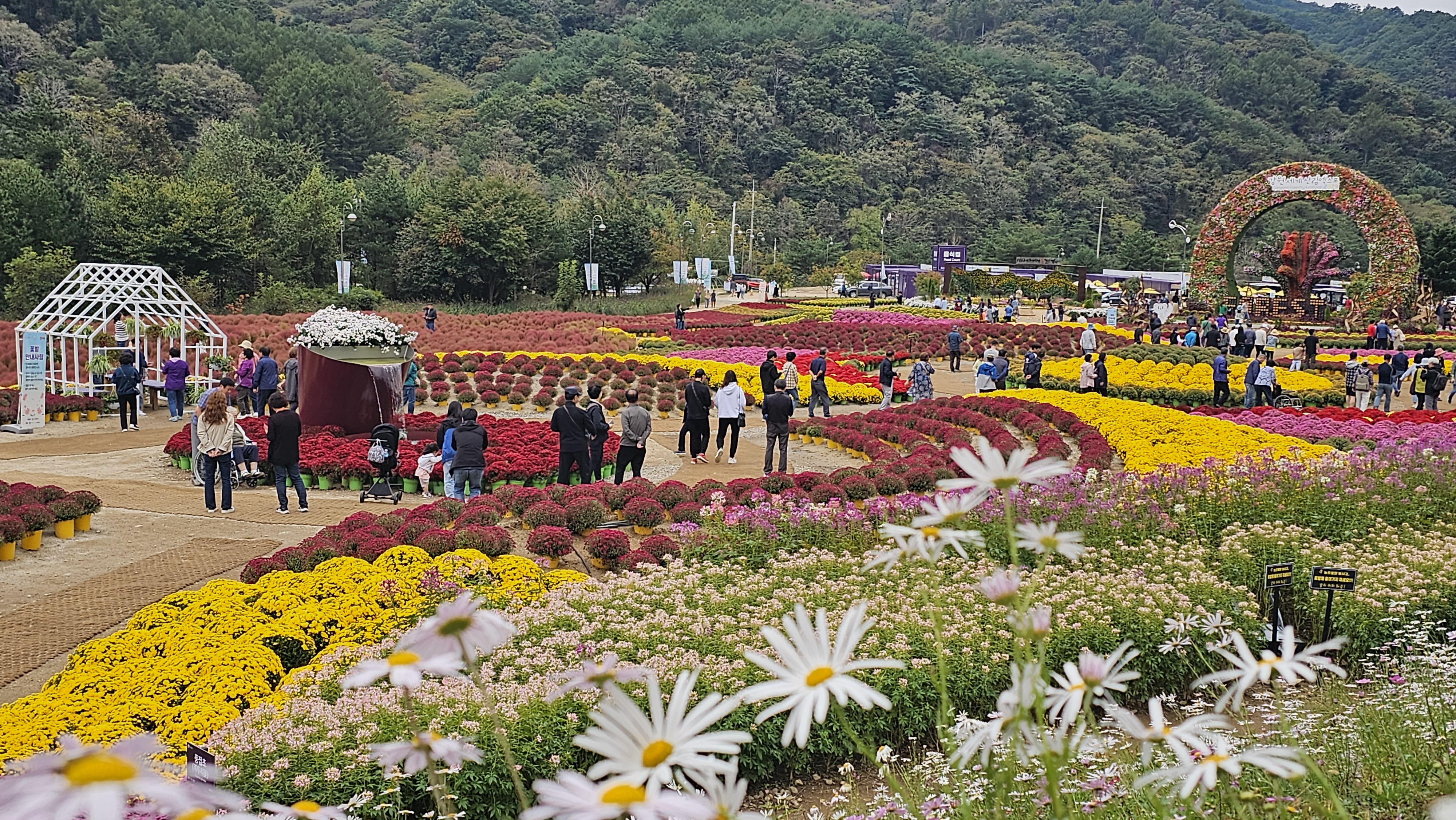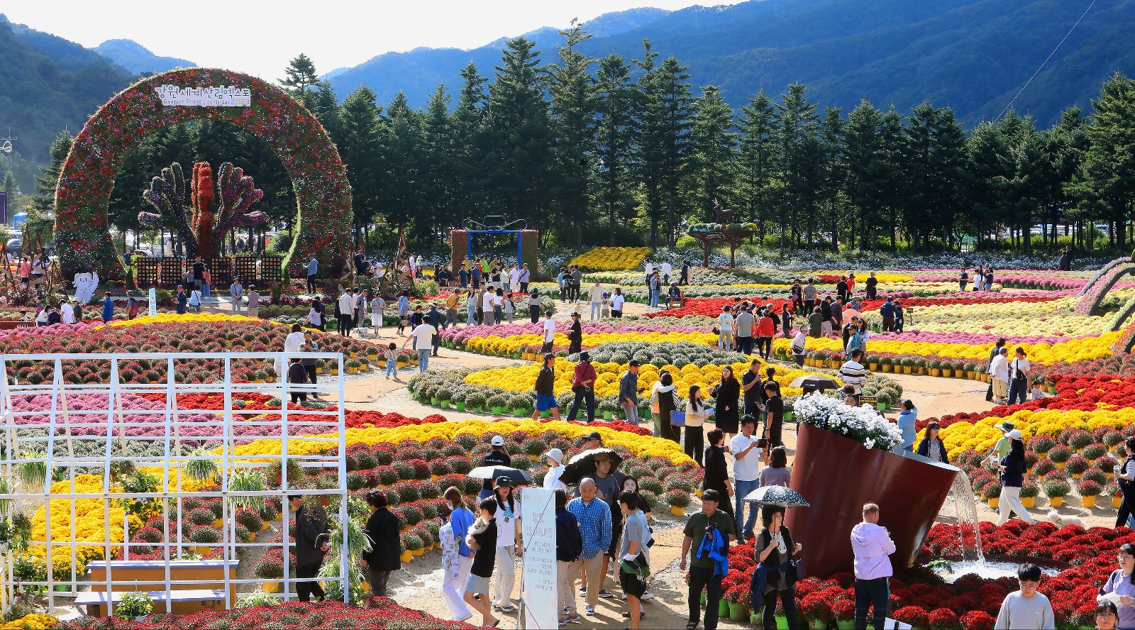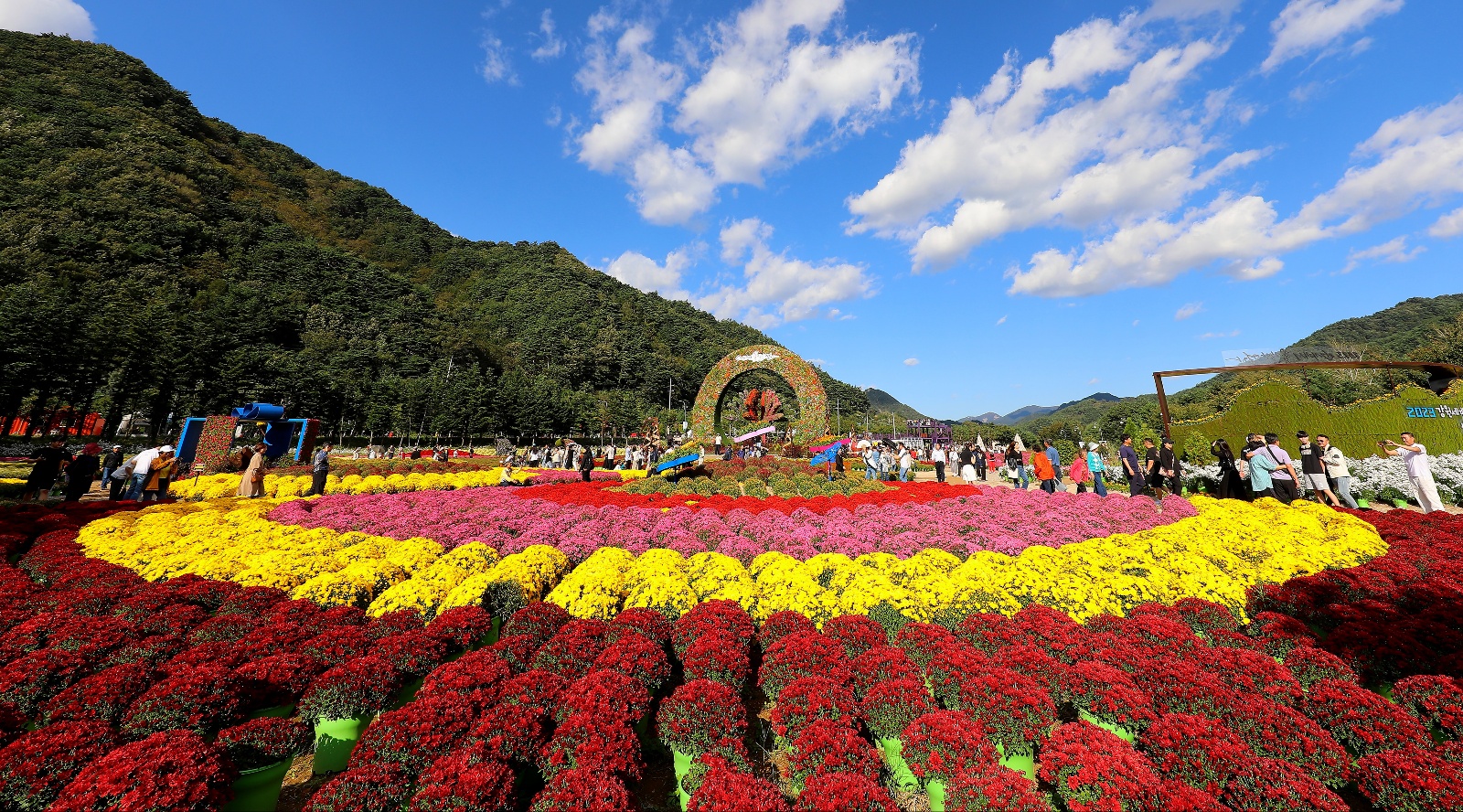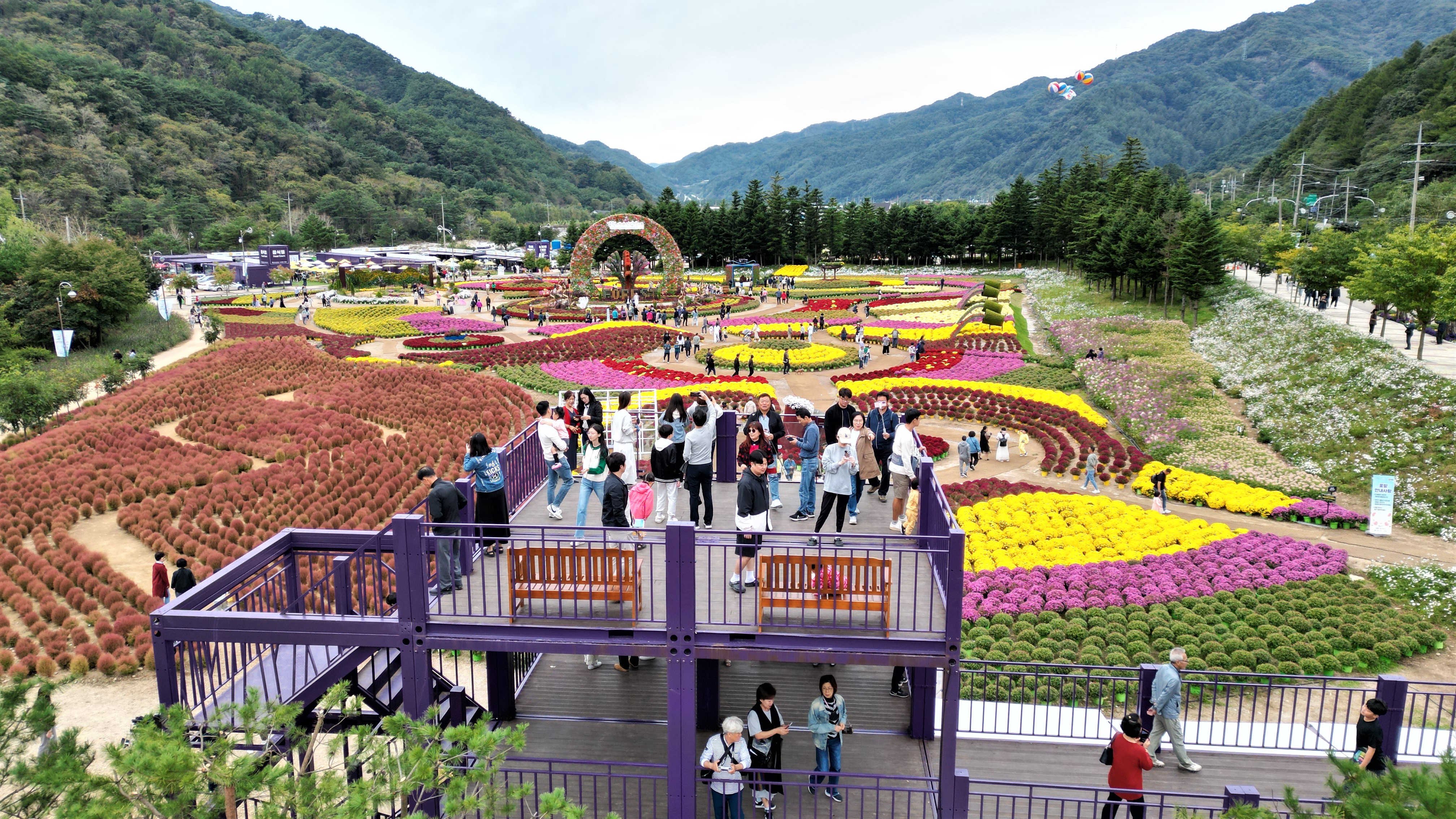 특히 32만 주 가을꽃과 꽃조형물로 꾸며진 정원, 폭포와 분수·꽃배가 어울어진 수변둘레길, 울창한 소나무 숲을 따라 걷다 보면 물들어가는 가을의 정취를 물씬 느낄 수 있다. 지난 황금연휴 축제장에는 가을꽃의 향연을 즐기려는 사람들의 발길이 끊이지 않았다.