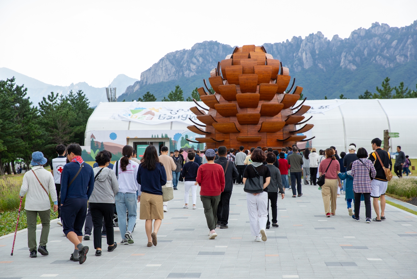 조직위는 울산바위가 한눈에 보이는 경치 좋고 쾌적한 행사장과 솔방울전망대와 푸른지구관, 가족들이 함께 쉬며 놀 수 있는 힐링광장을 비롯해서 다양한 체험과 공연들을 한번에 즐길 수 있는 주행사장이 입소문을 계속 타고 있고,