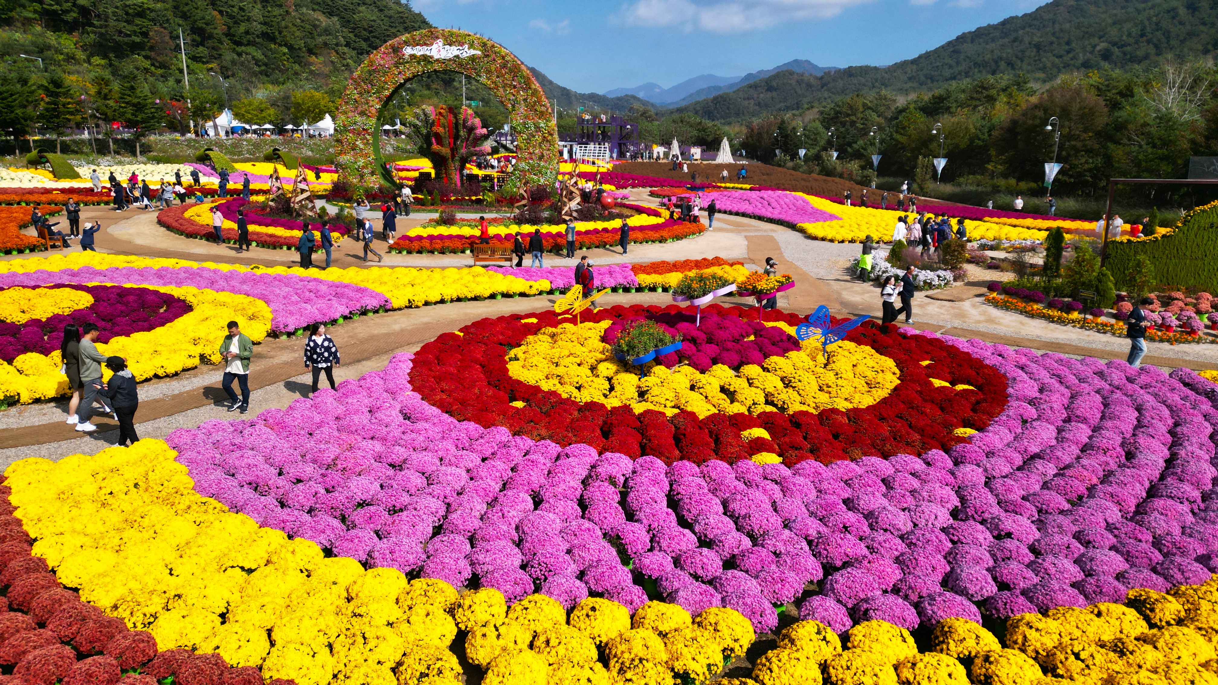 32만 주 가을꽃과 꽃조형물로 꾸며진 정원, 폭포와 분수·꽃배가 어우러진 수변둘레길, 울창한 소나무 숲은 방문객들에게 특별한 가을의 추억을 선사했다.