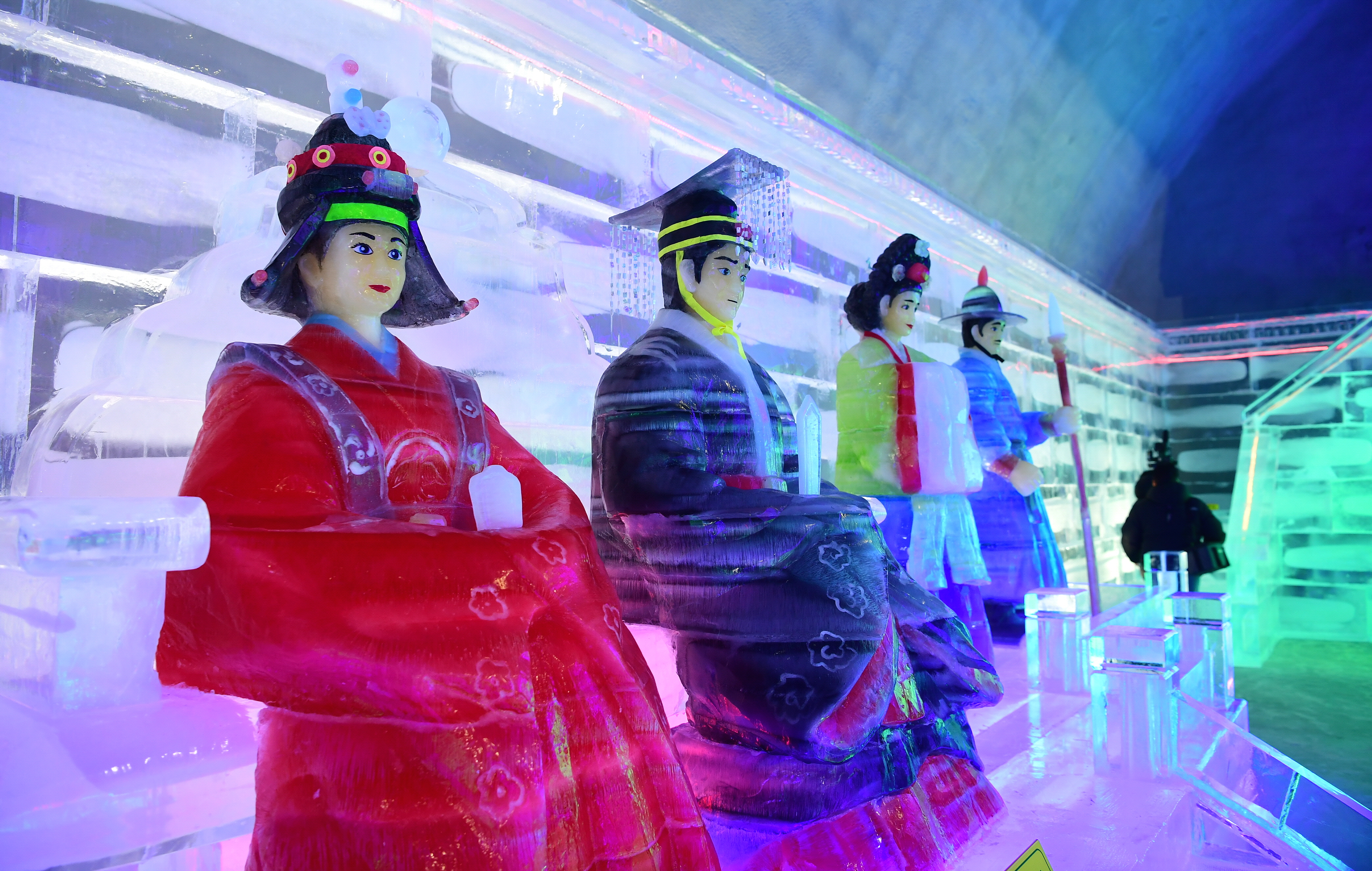 이날 공개된 실내얼음조각광장에는 지난달 입국한 하얼빈 주재 빙설문화발전 유한공사 기술진들이 조각한 세계 유명 건축물 모형과 각종 조형물이 모습을 드러내 관광객들의 탄성을 이끌어 냈다.