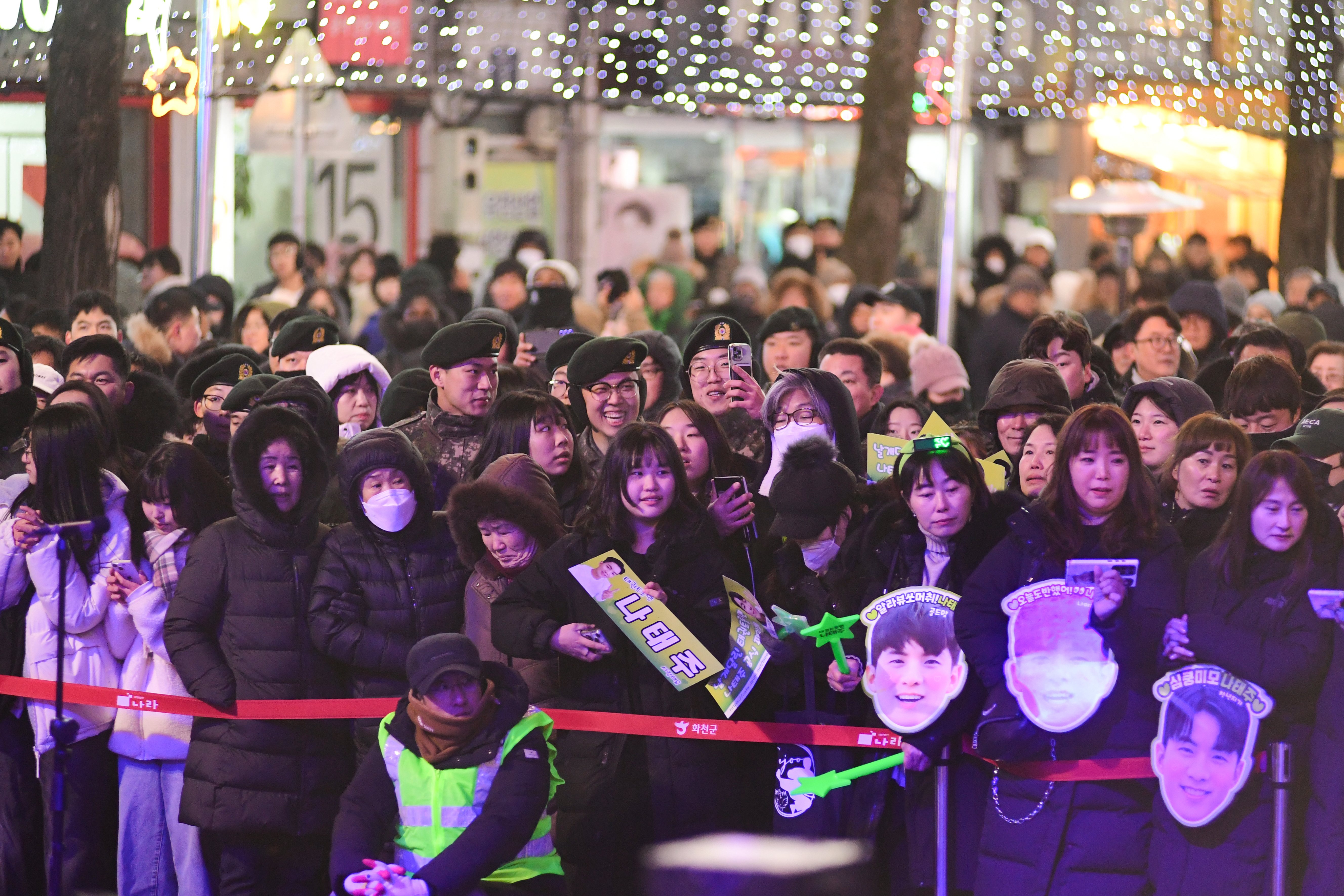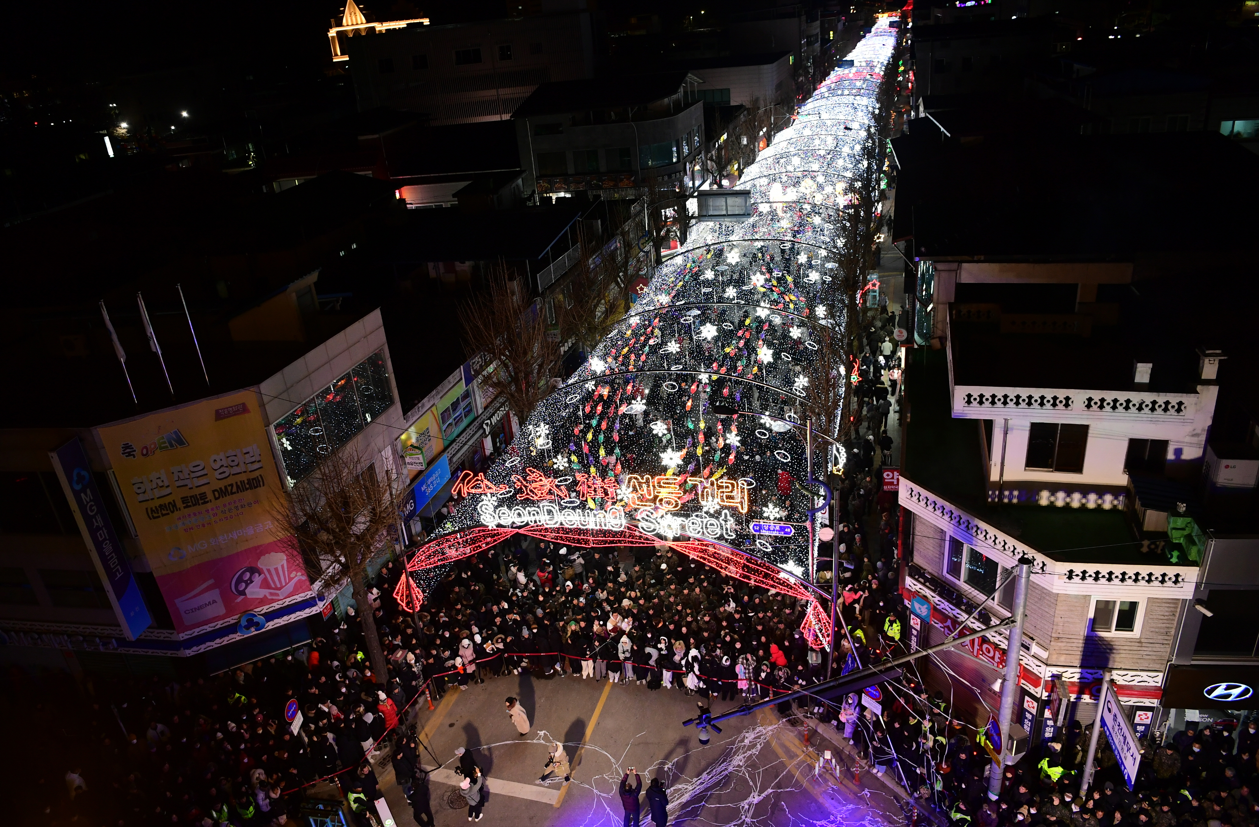 이날 점등식에는 오랜만의 공연을 즐기고, 2024 화천산천어축제의 성공개최를 기원하는 군민들과 군장병, 관광객들이 선등거리를 가득 메웠다.