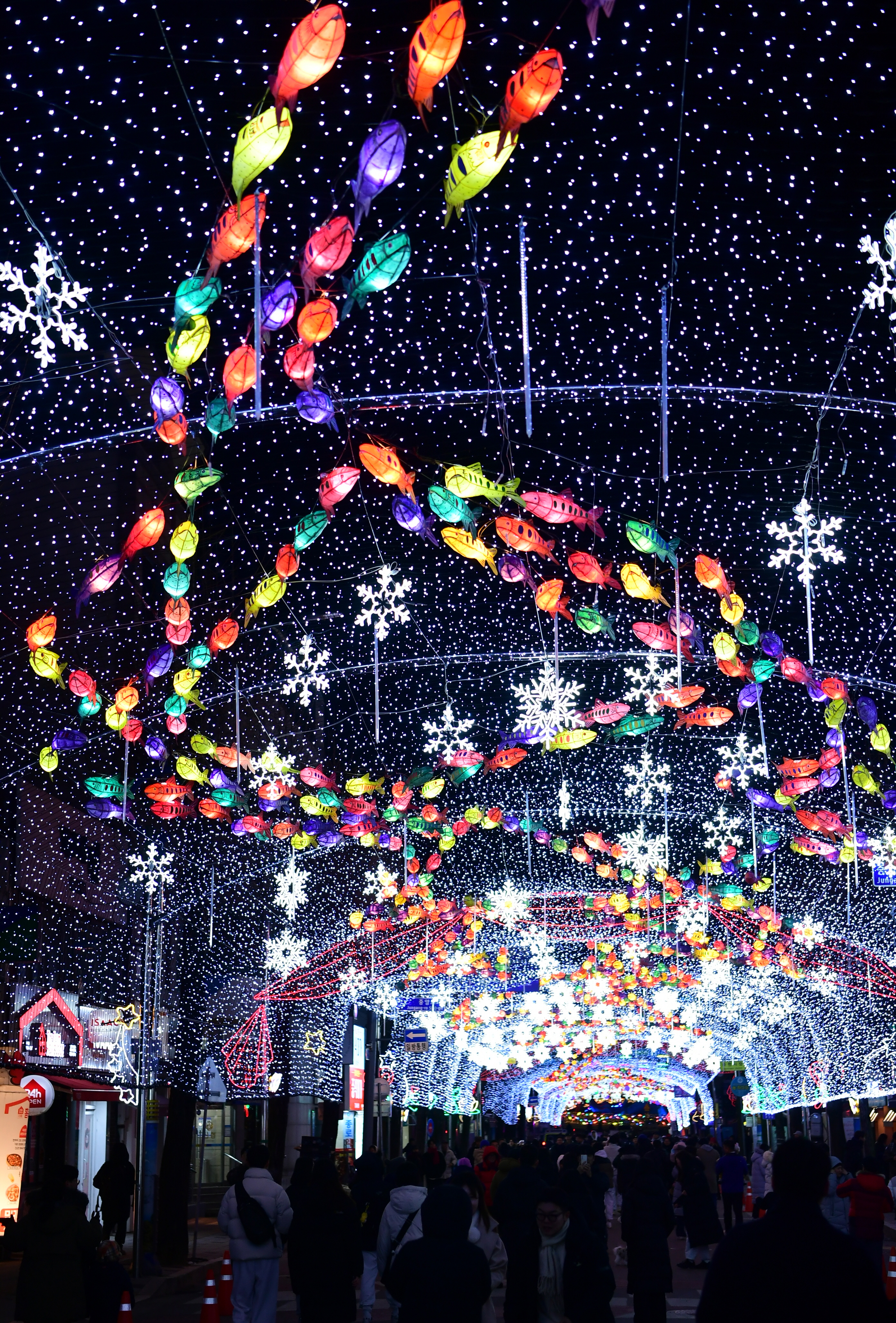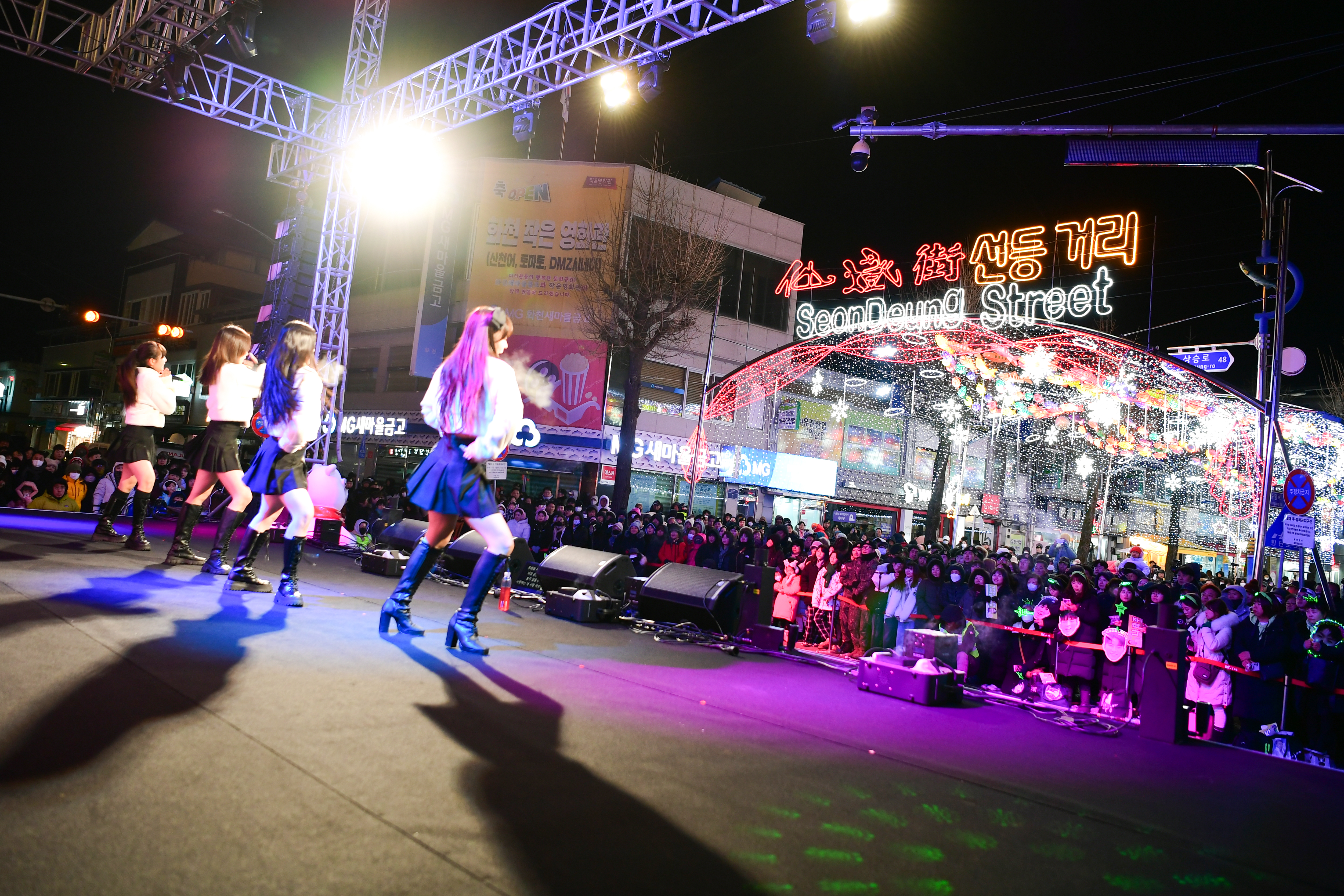 이날 점등식에는 오랜만의 공연을 즐기고, 2024 화천산천어축제의 성공개최를 기원하는 군민들과 군장병, 관광객들이 선등거리를 가득 메웠다.