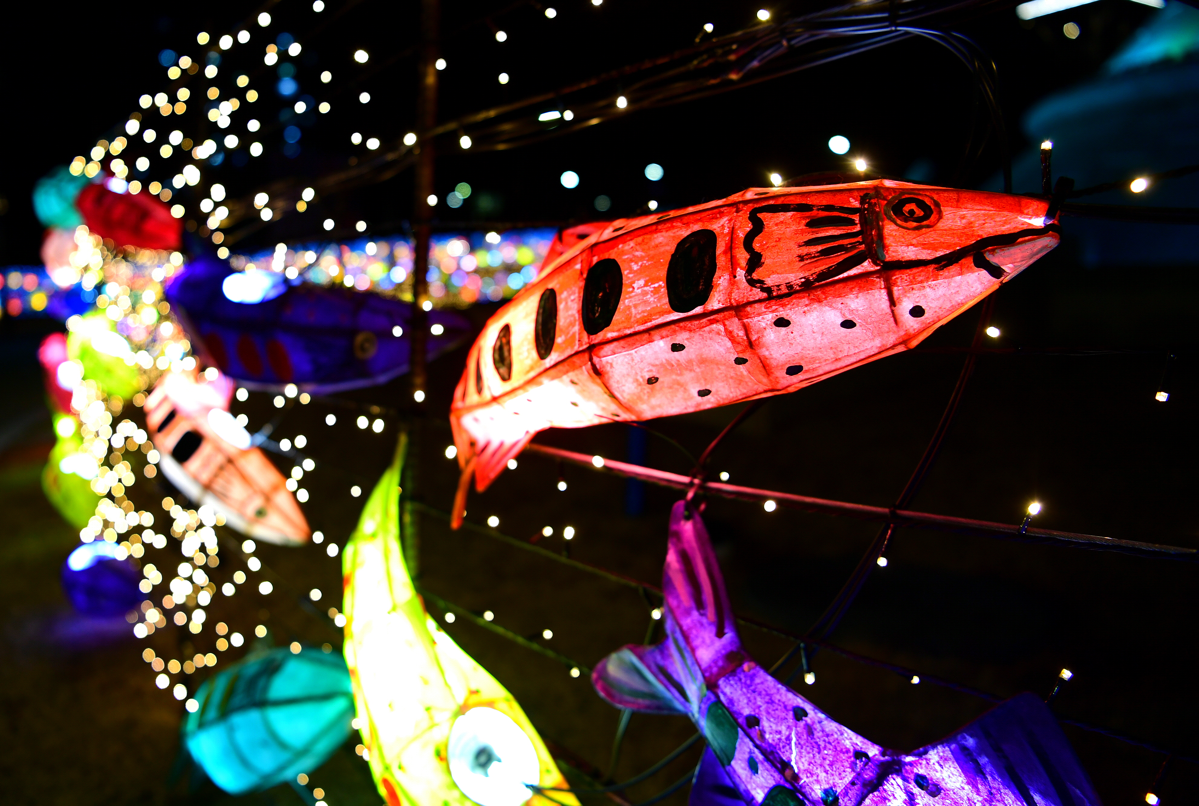 축제를 준비하는 (재)나라 이사장인 최문순 군수를 비롯해 노이업 군의장, 지역 주둔 부대장, 박대현 도의원을 비롯한 기관‧사회단체장들이 카운트 다운에 맞춰 점등 버튼을 동시에 누르자, 화려한 폭죽과 함께 2만7,000여개의 산천어등, 그리고 수만 개의 LED 조명이 일제히 형형색색의 빛을 뿜어내기 시작했다.