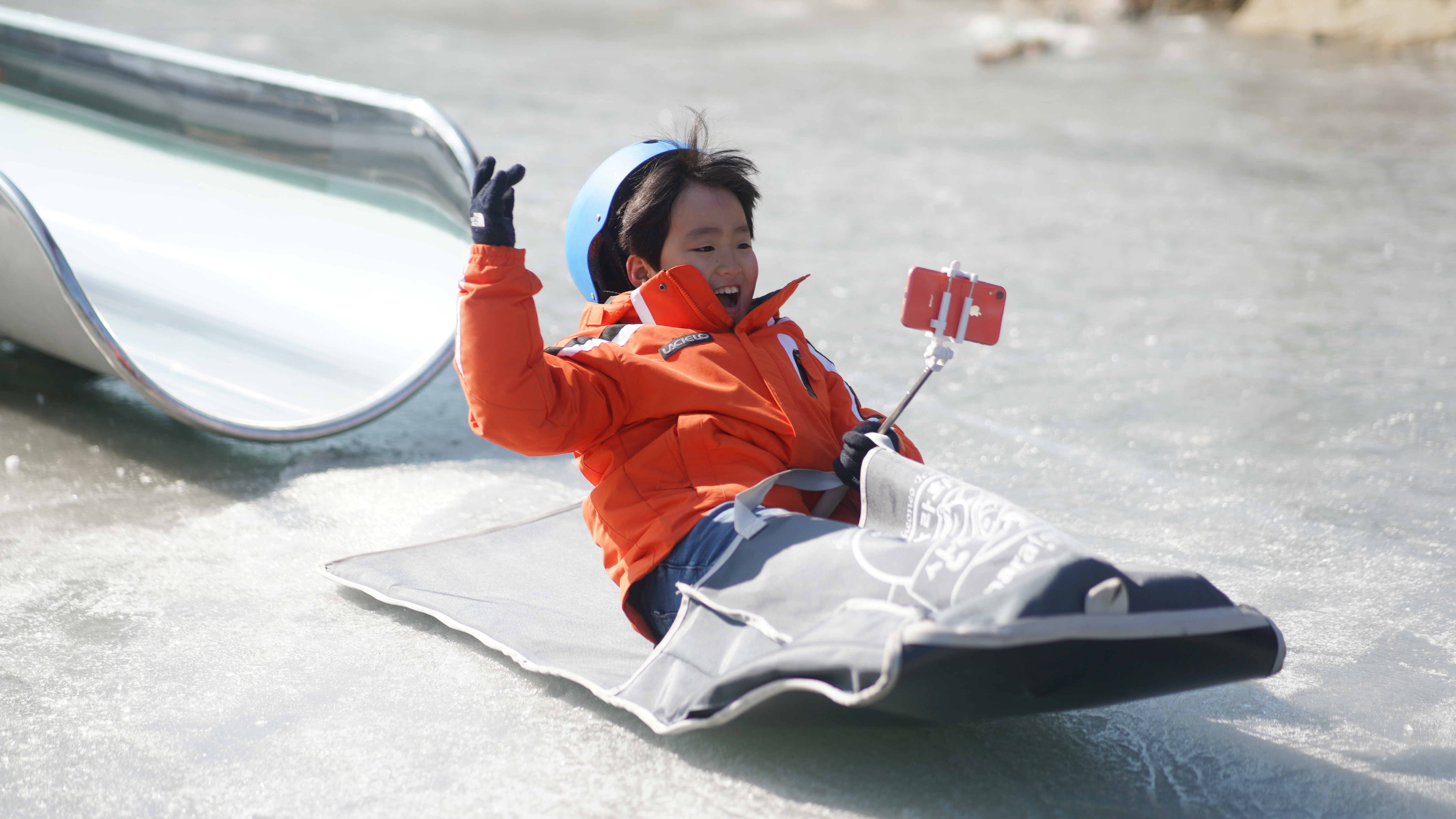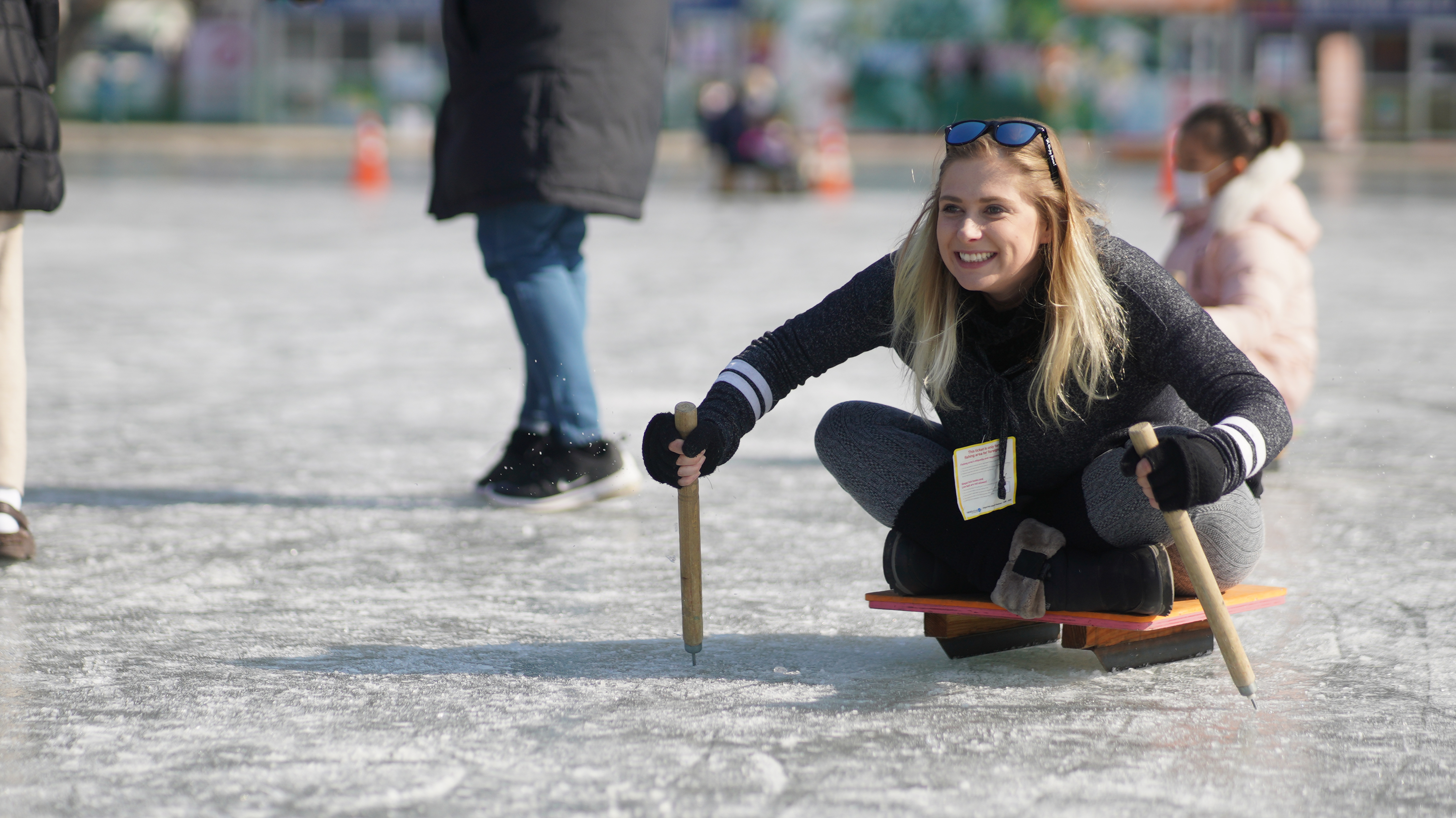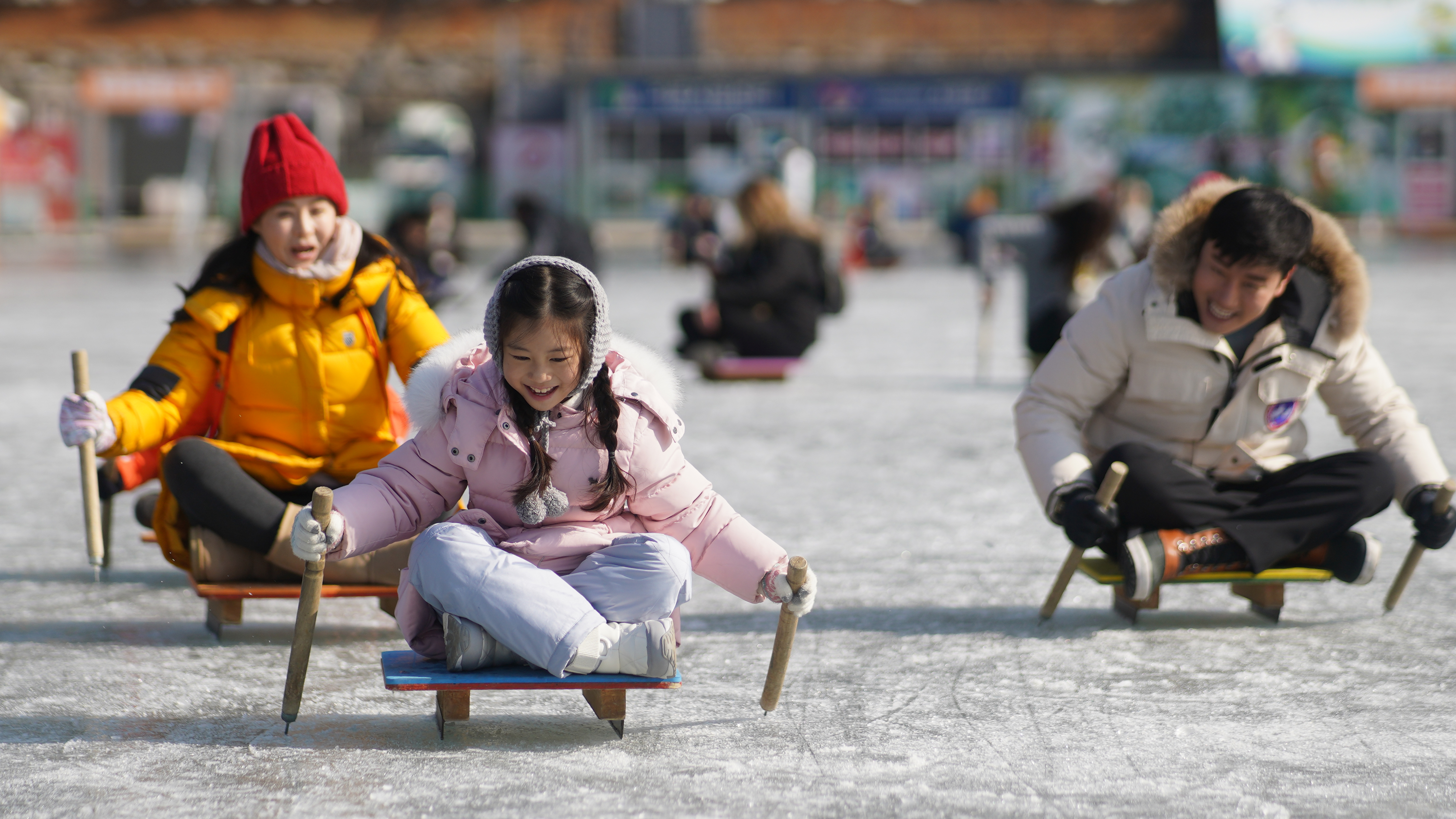 얼음썰매 체험존에서는 우리나라 전통 얼음썰매, 화천군이 직접 만든 가족형 얼음썰매를 체험할 수 있다.