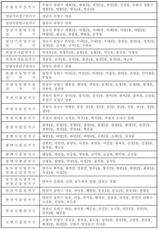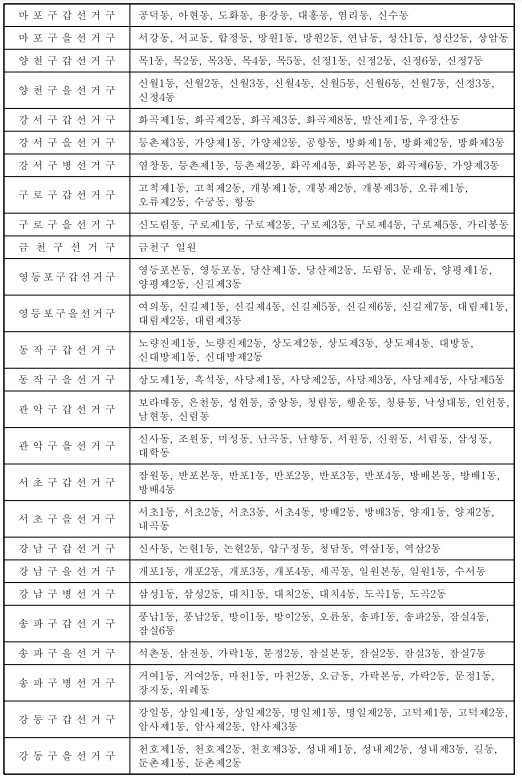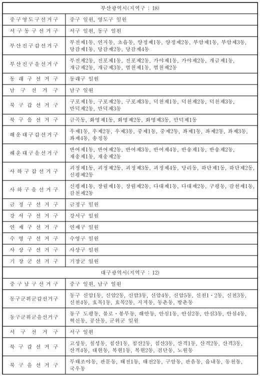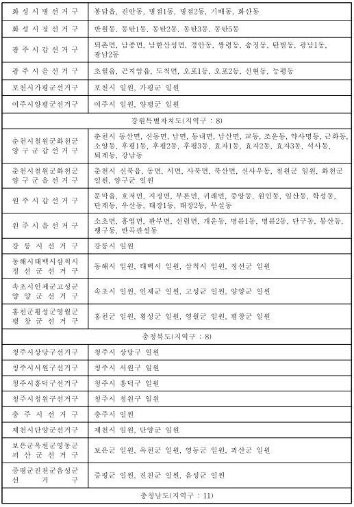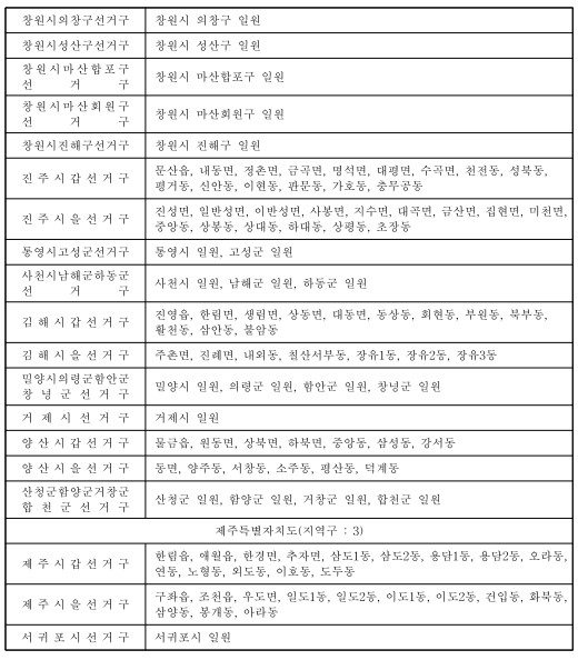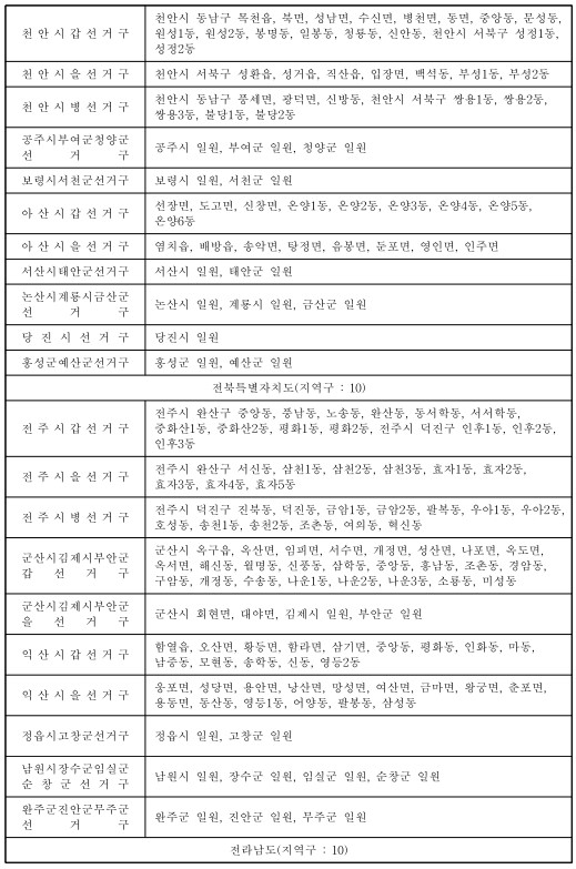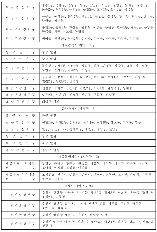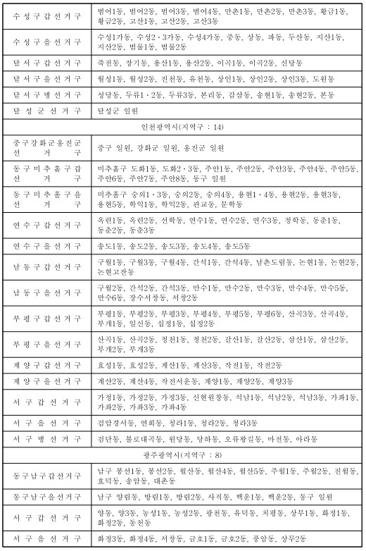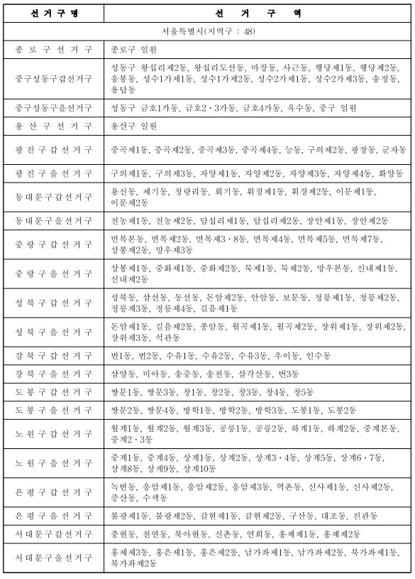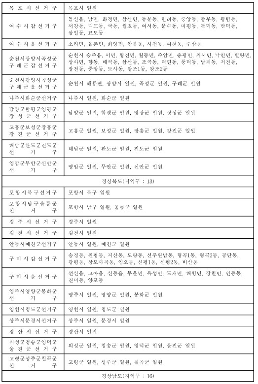 제22대 국회의원선거 국회의원지역선거구구역표(지역구 : 254) 본문