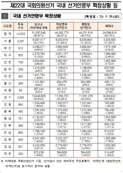 제22대 국회의원선거 국내 선거인명부 총 44,251,919명 확정 본문