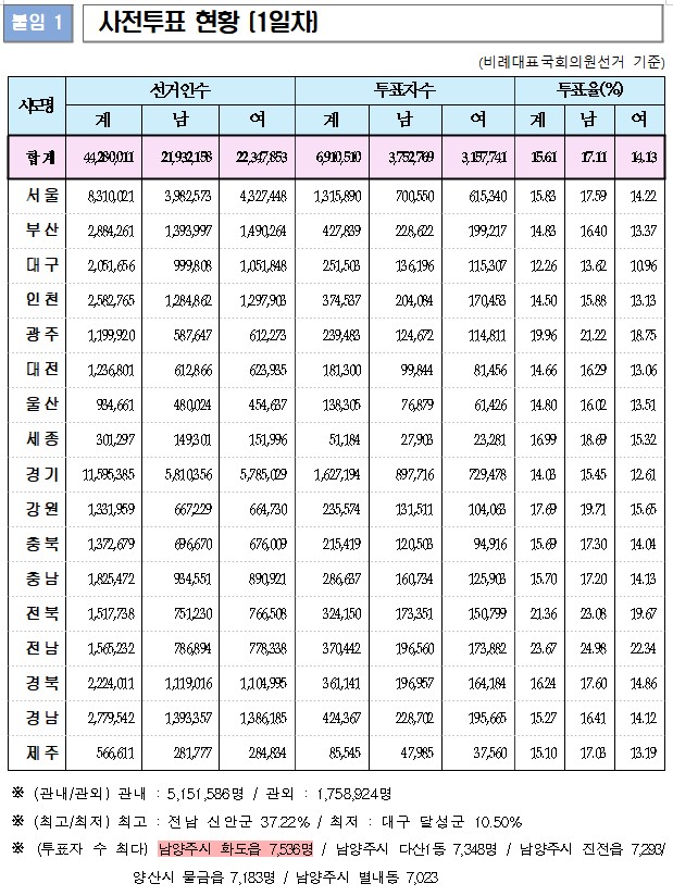 제22대 국회의원선거 1일차 사전투표 현황 본문